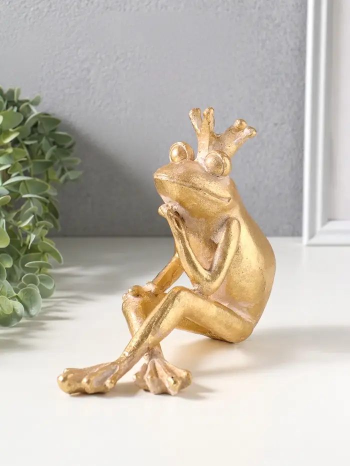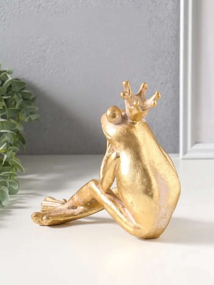 Сувенир полистоун "Принцесса-лягушка в короне" золото 19х9,3х16,5 см