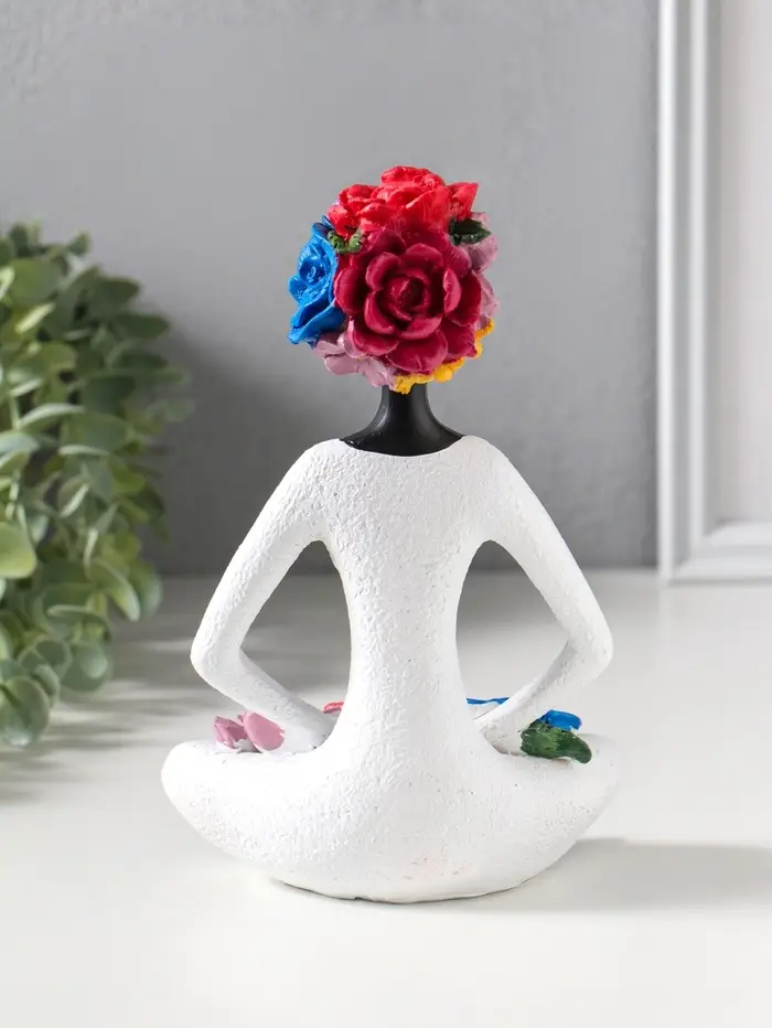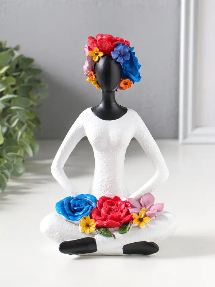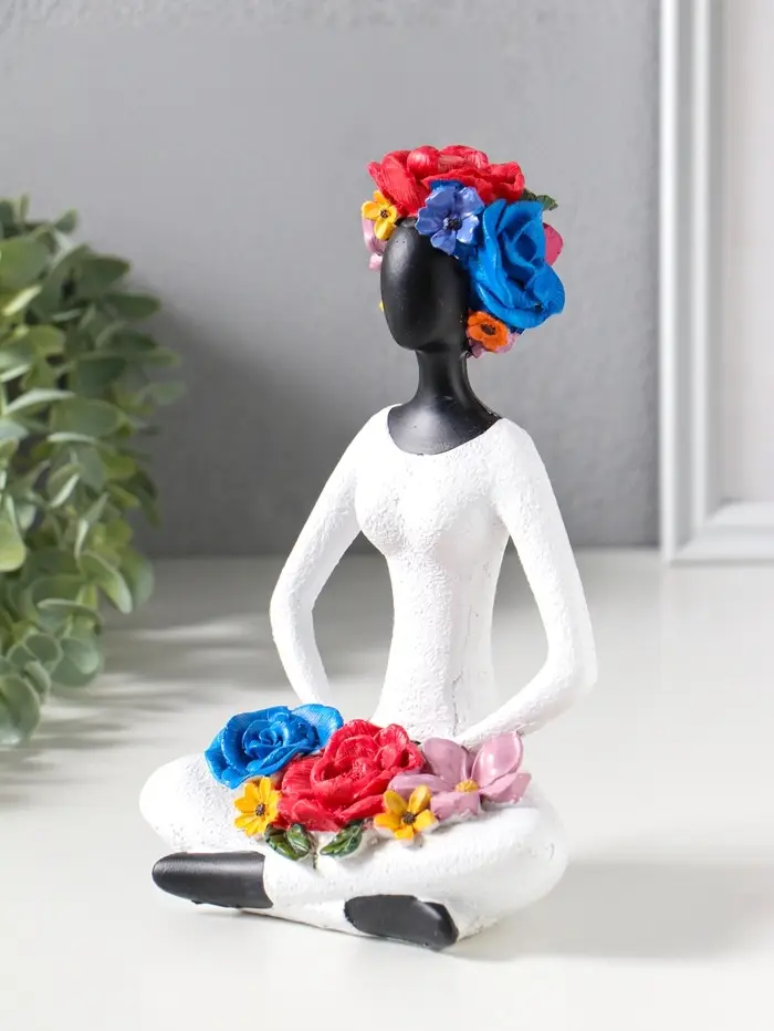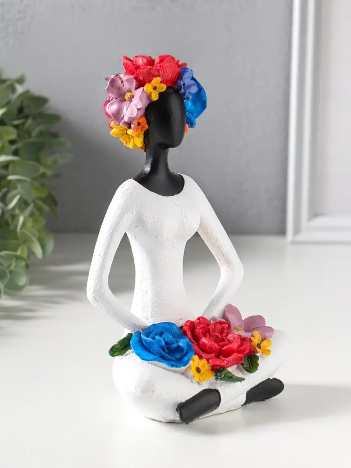 Сувенир полистоун "Девушка-йогиня в позе лотоса, с цветами" чёрный 12,5х9,5х19,5 см