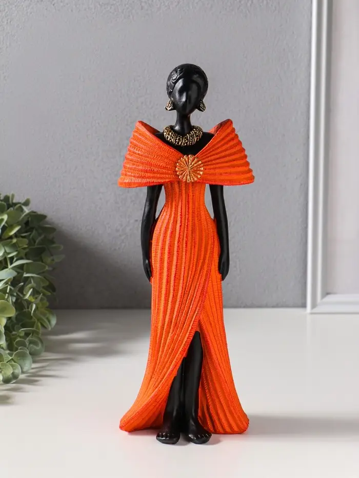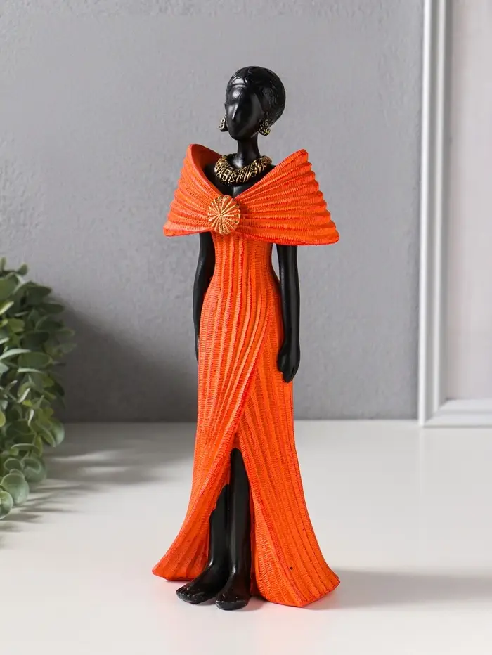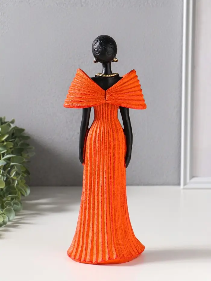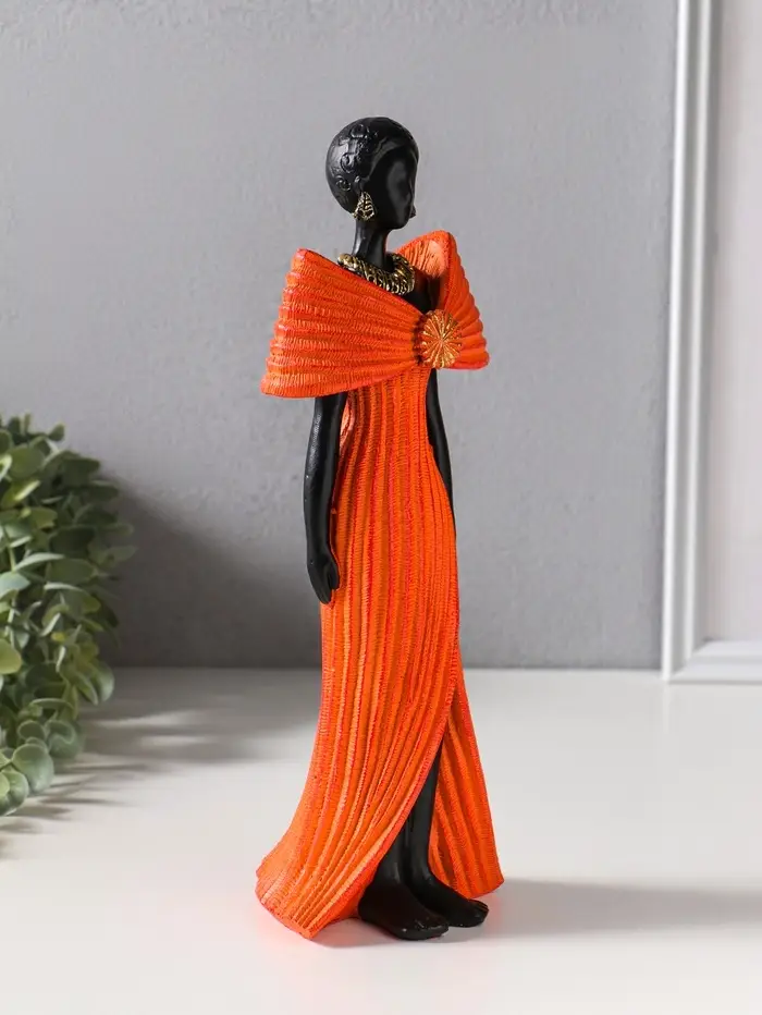 Сувенир полистоун "Девушка в ярко-оранжевом платье с большим бантом" чёрный 11х9,5х30,5 см 1092991