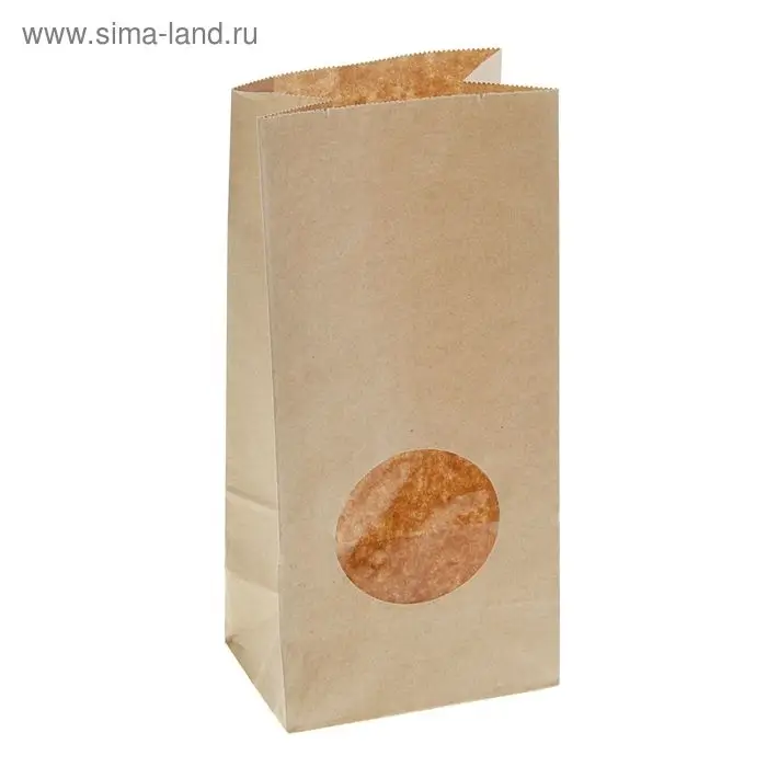 Пакет крафт бумажный фасовочный, однослойный, с окном, прямоугольное дно 12(7) х 8 х 25 см