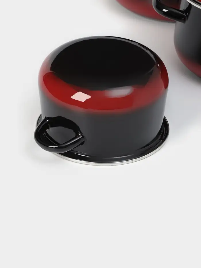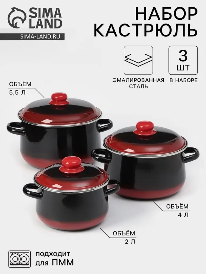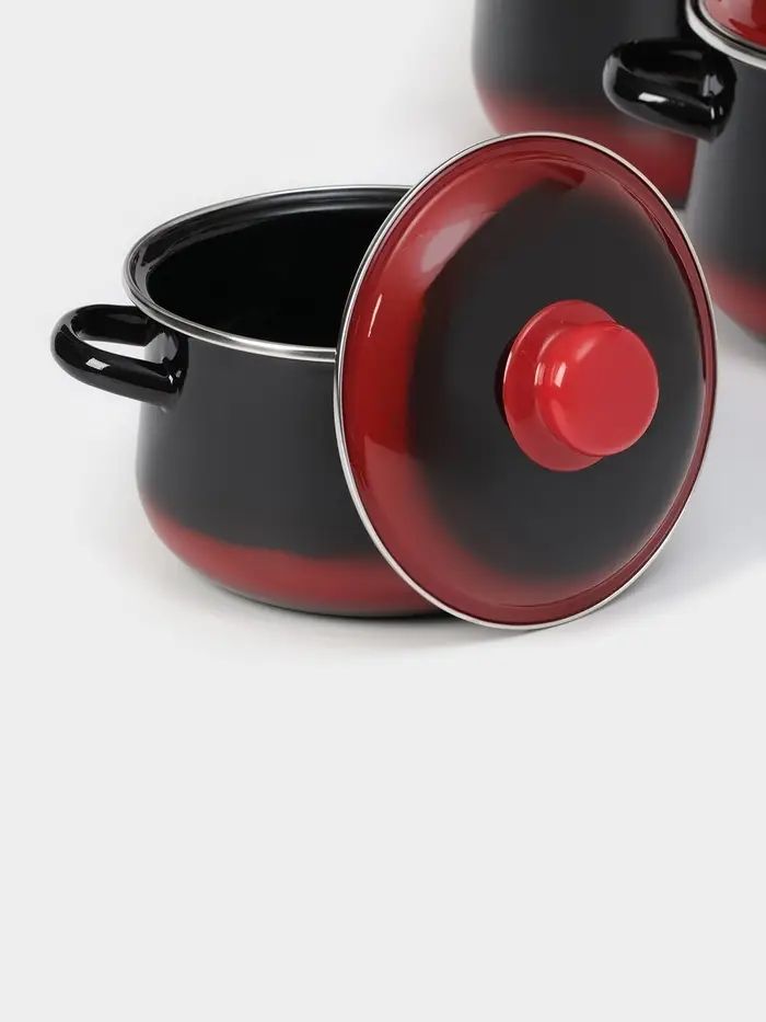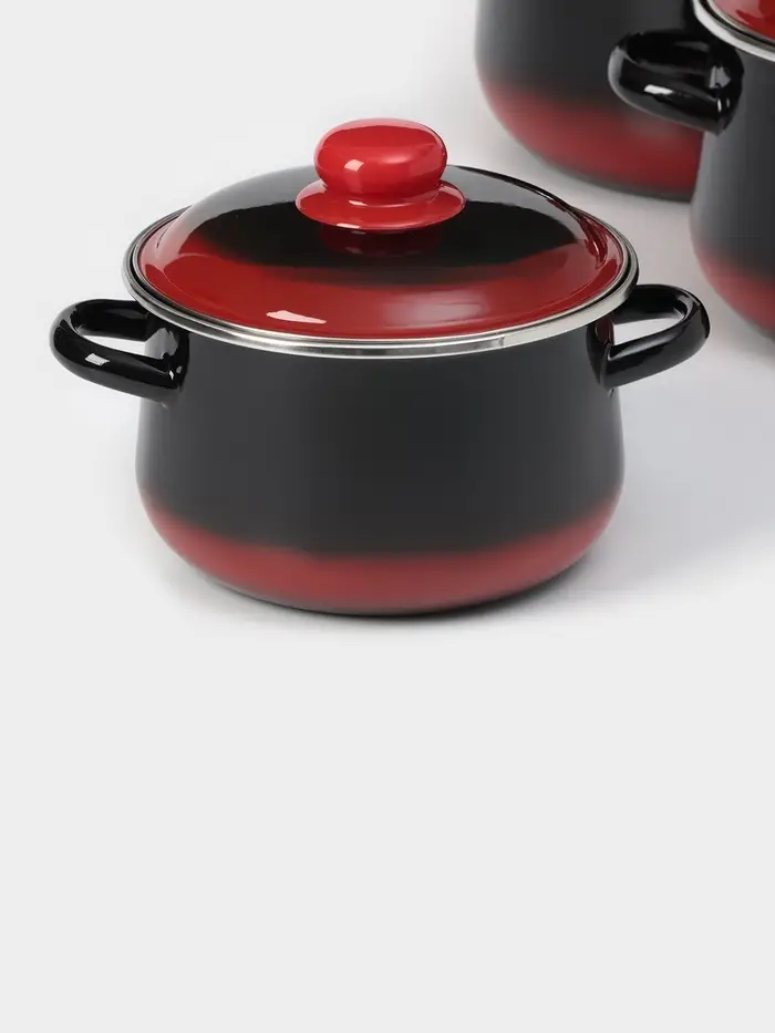 Набор эмалированных кастрюль «Кармен», 3 шт.: 2 л, 4 л, 5.5 л, индукция, чёрный, красный
