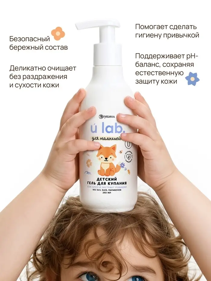 Детский гель для купания «Зверята», с соком алоэ и экстрактом ромашки, 250 мл, ULAB