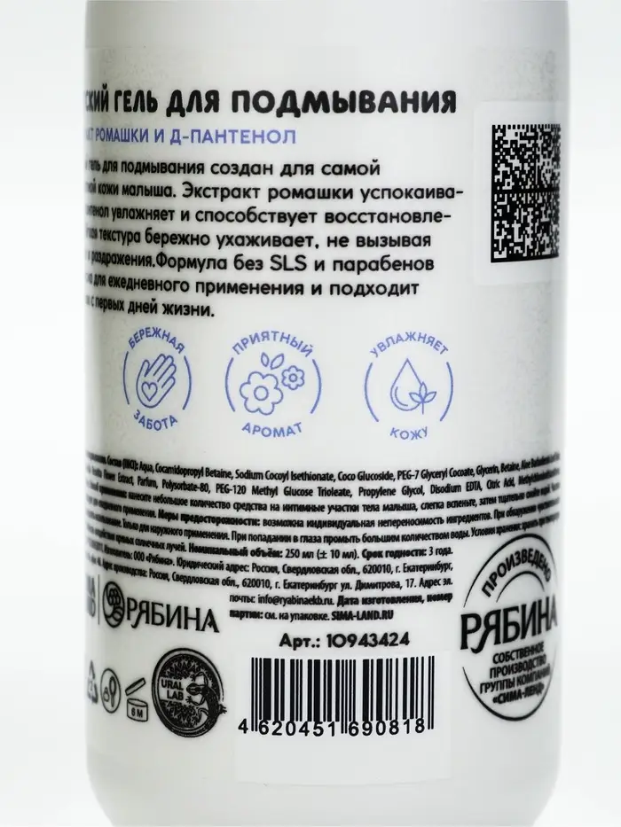 Детский гель для подмывания «Зверята», с экстрактом ромашки, 250 мл, ULAB
