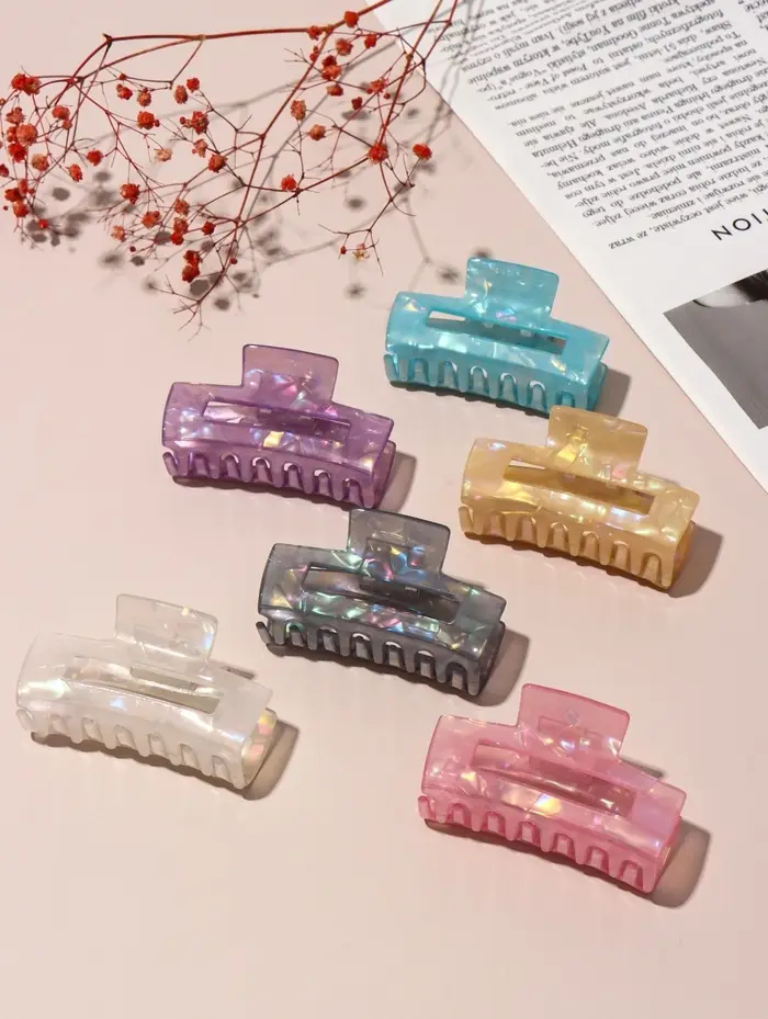 Краб для волос "Линда" прямой перламутр, 8х4 см, микс