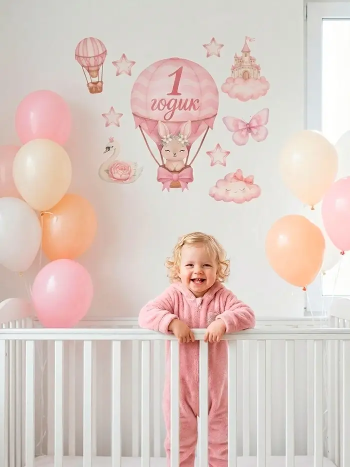 Набор оформительский «1 годик» для девочки, 11 предметов