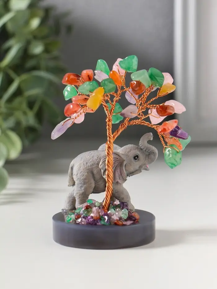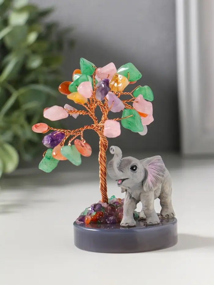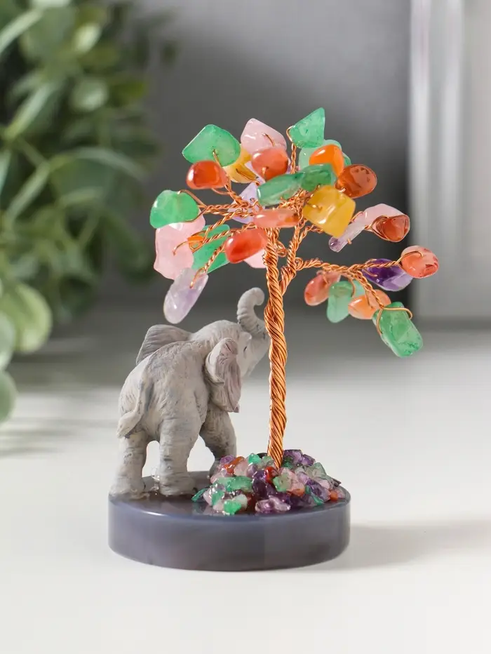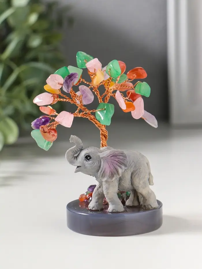 Сувенир "Слон у дерева" 18 камней 5,8х5,8х10,5 см
