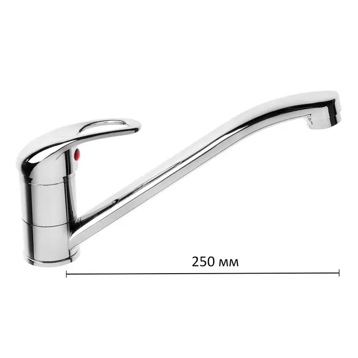 Кухонный смеситель с длинным изливом, хром — смеситель для удобного мытья в глубокой мойке. Поворотный излив длиной 25 см.