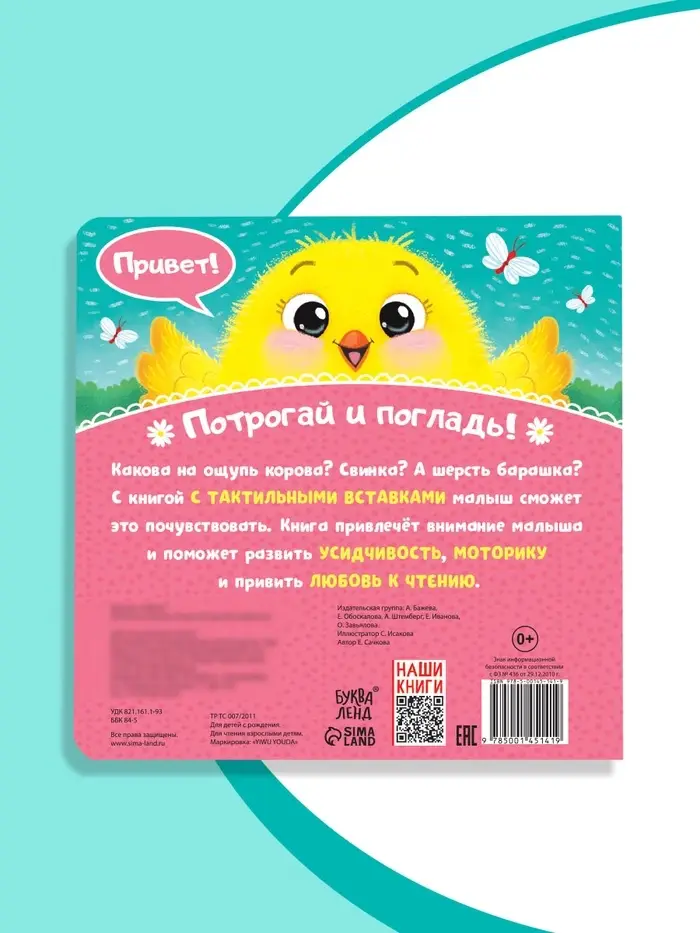 - Книга изготовлена из безопасных материалов, подходящих для детей с рождения.