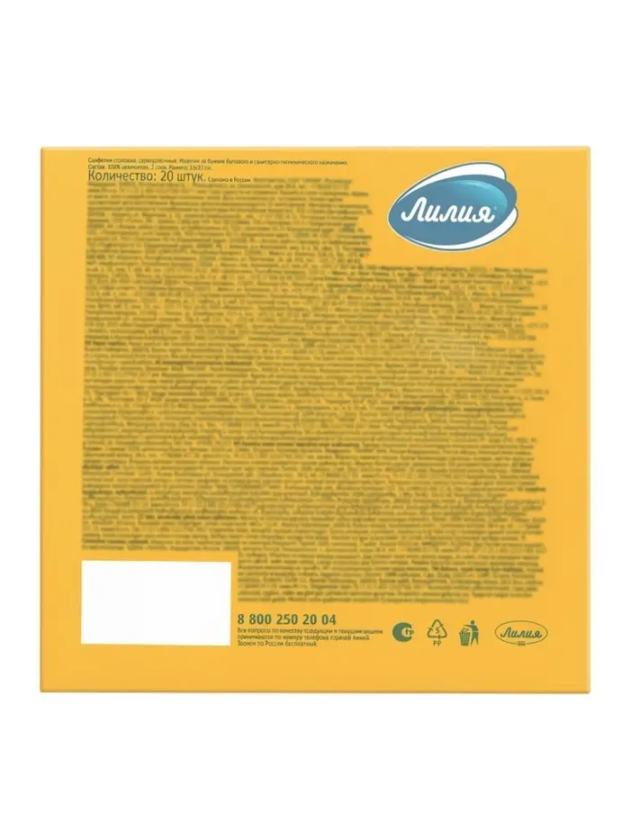 Салфетки бумажные, Лилия 33х33 "Желтый" 2сл 20л