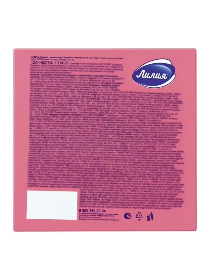 Салфетки бумажные, Лилия 33х33 "Розовый" 2сл 20л
