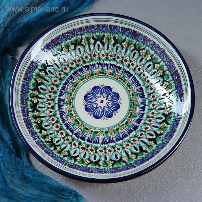 Ляган Риштанская Керамика "Узоры", 32 см, синий
