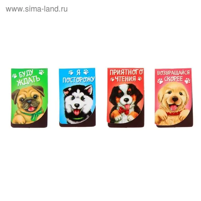 Набор магнитных закладок для книг Calligrata 6 штук, "Собачки", МИКС