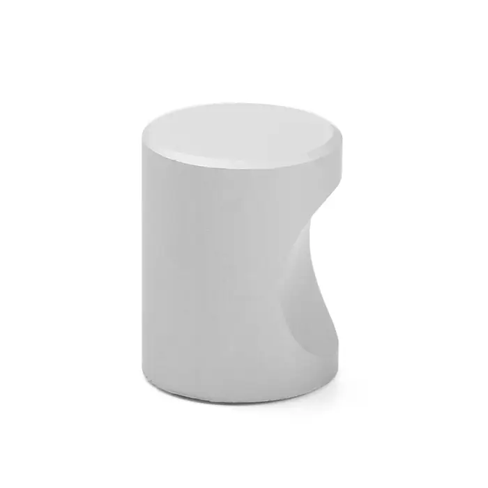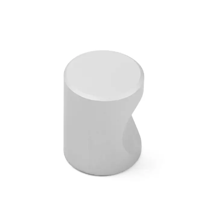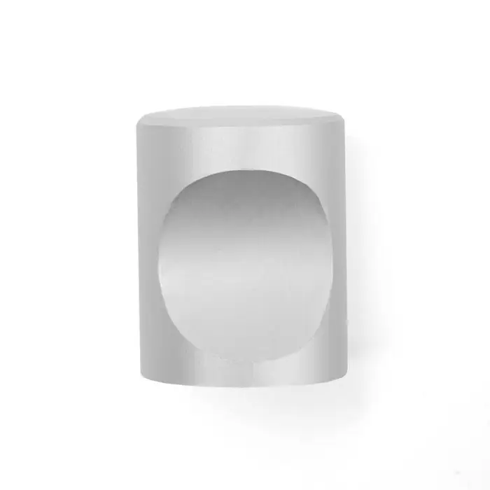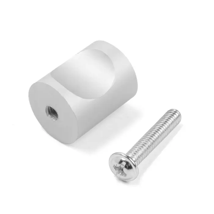 Данная дверная ручка выполнена в форме кнопки и крепится к мебели с помощью винта. Модель выполнена из прочного алюминия и имеет серебристый цвет .