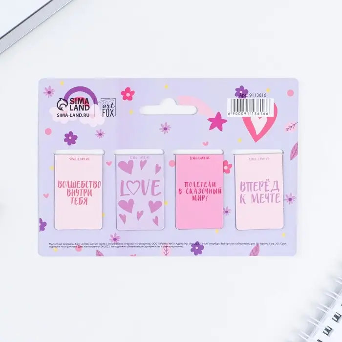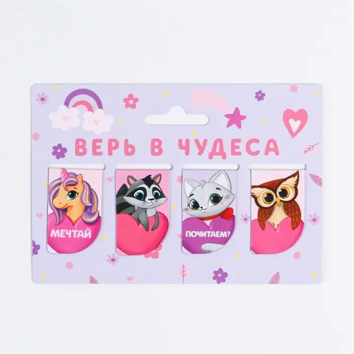 Закладки магнитные для книг, 4 шт «Верь в чудеса»