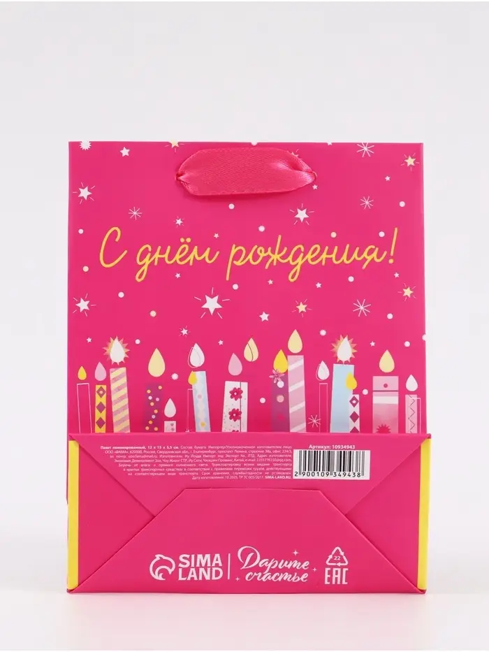 Пакет подарочный «С Днём рождения. Свечи», 12×15×5.5 см