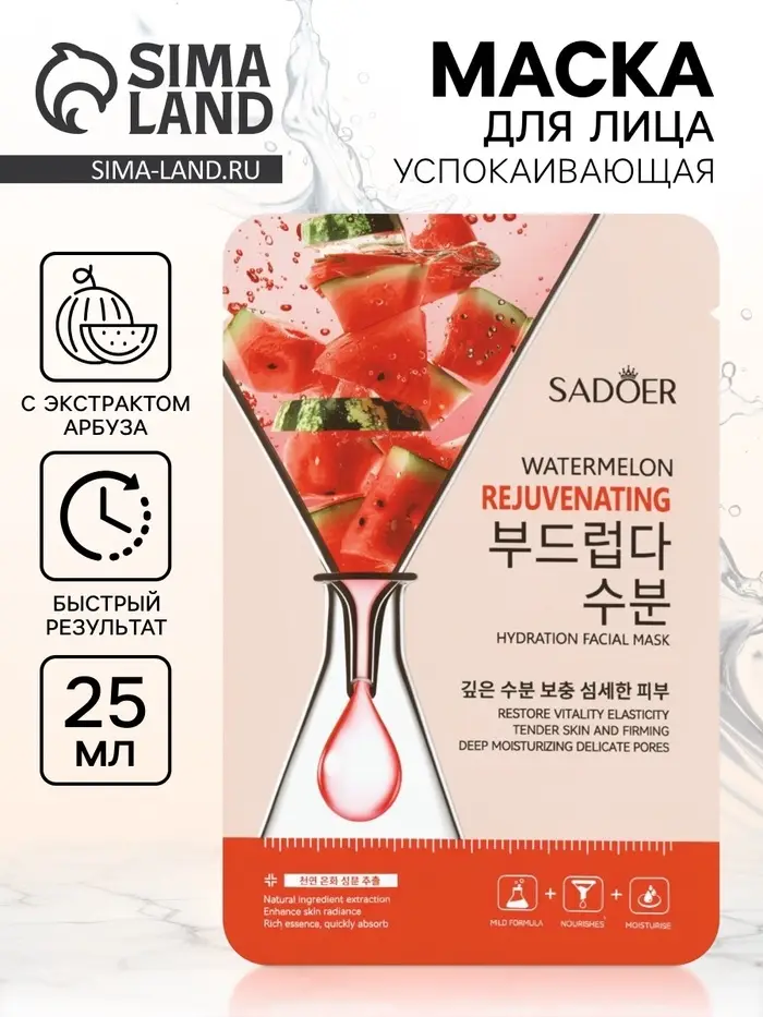 Успокаивающая маска для лица Sadoer «Арбуз», 25 мл