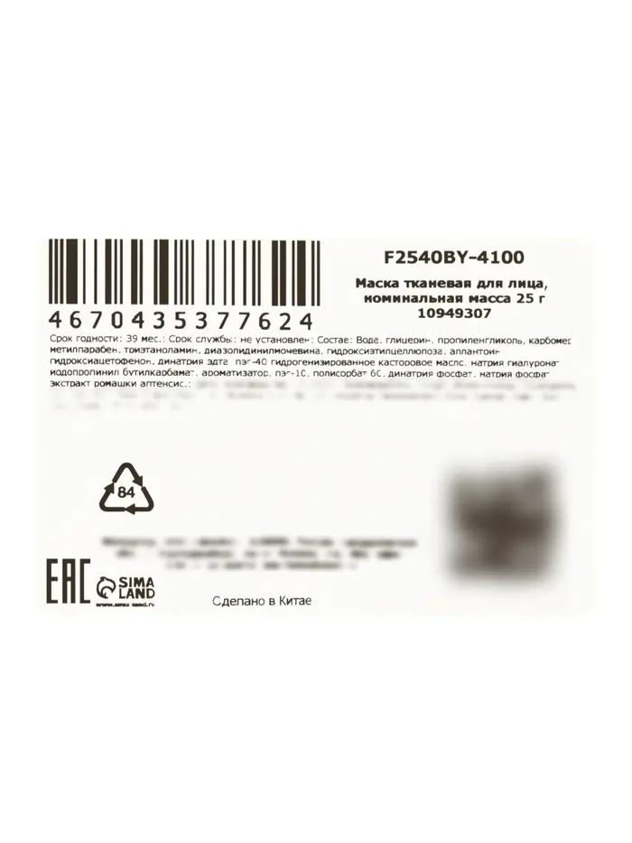 - Выньте маску из упаковки и аккуратно наложите её на лицо, избегая области глаз.