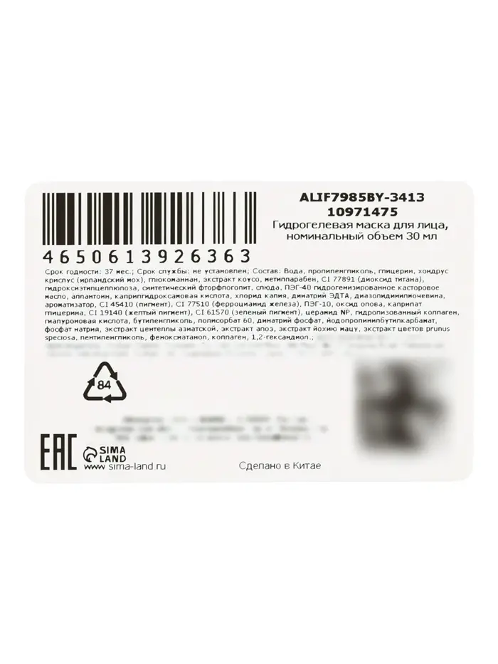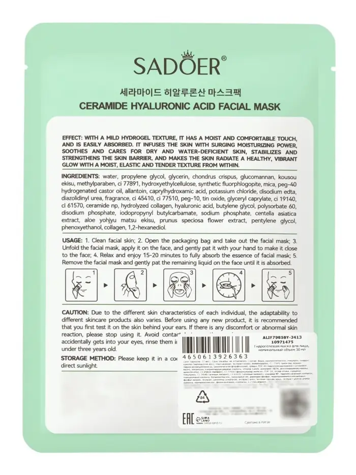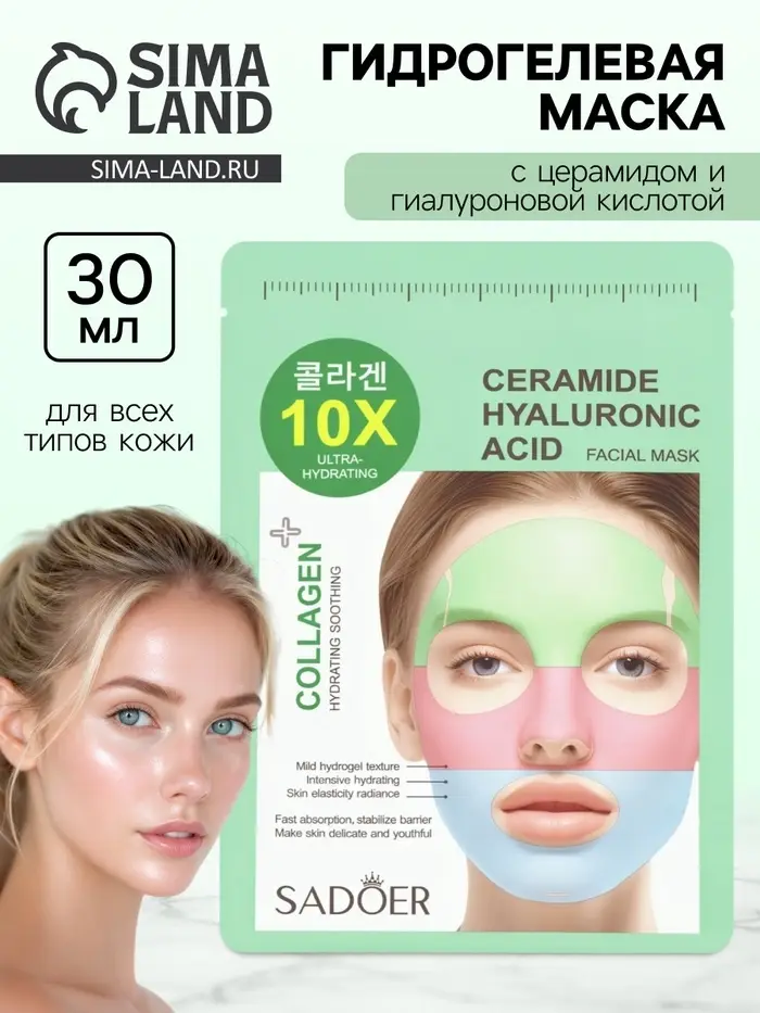 Гидрогелевая маска для лица, с церамидом и гиалуроновой кислотой, 30 мл