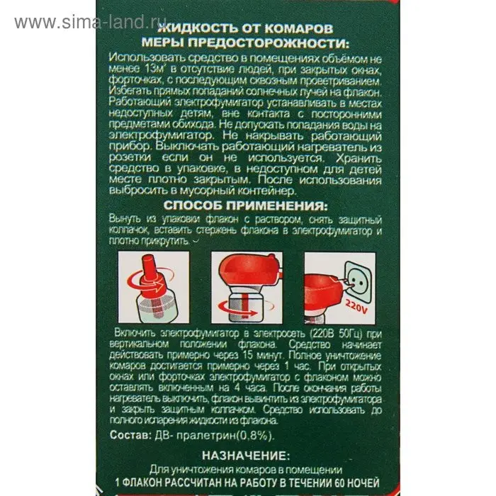 Средство инсектицидное "Жидкость от комаров" без запаха, зеленое, 60 ночей, 30 мл