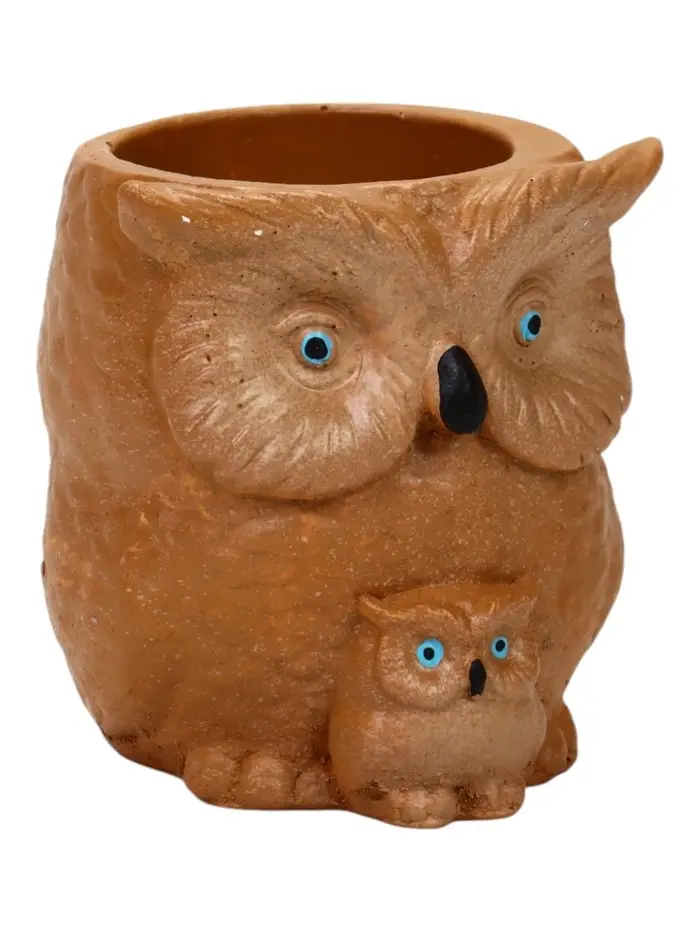 Фигурное кашпо "Сова с совенком" цвет охра 12х14х10см