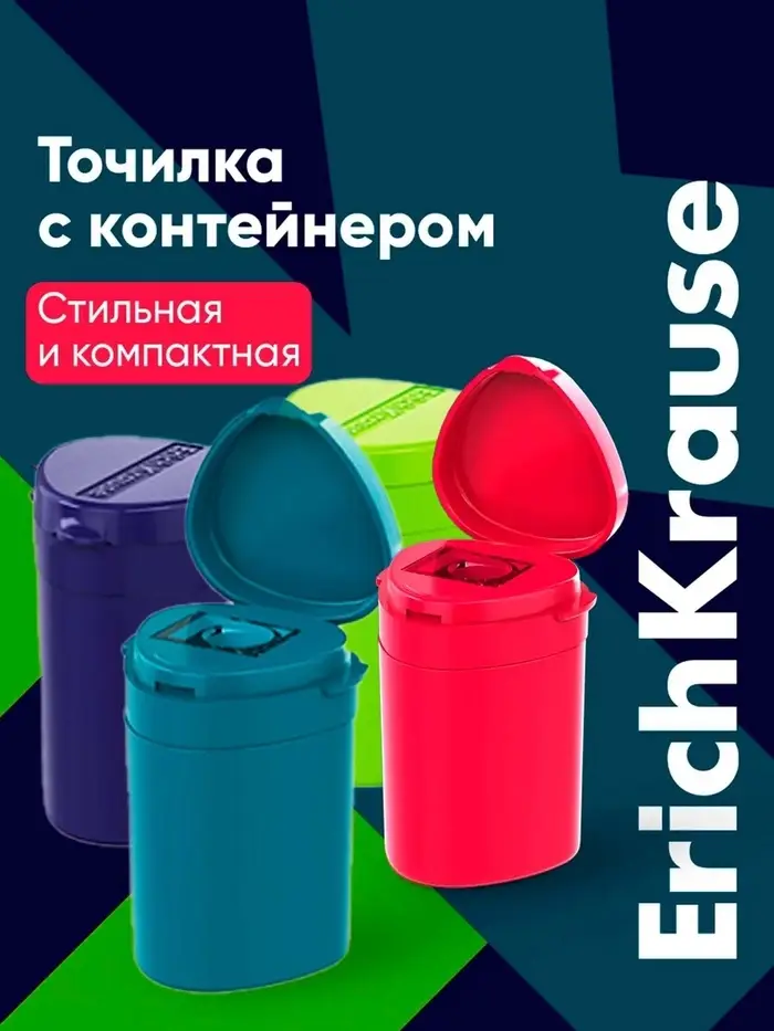 Точилка ErichKrause. S-Cube, с контейнером, МИКС