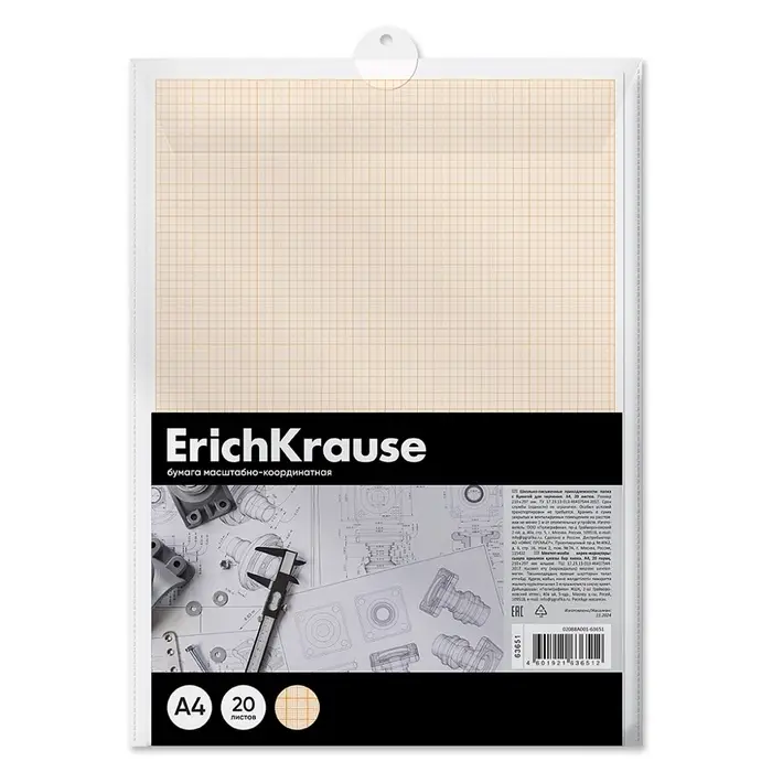 Бумага для черчения А4, 20 листов, ErichKrause, пласт папка