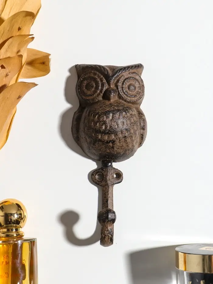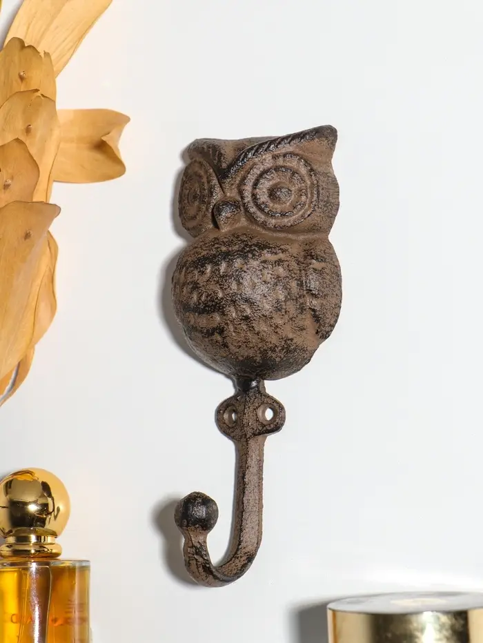 Эта чугунная ключница с крючком в виде филина встречает вас у порога. Массивная и добротная, она надежно хранит ключи от дома, превращая обычный предмет обихода в деталь интерьера. Теплый коричневый оттенок и детальная проработка оперения создают ощущение, что в вашем прихожей поселился мудрый лесной страж.