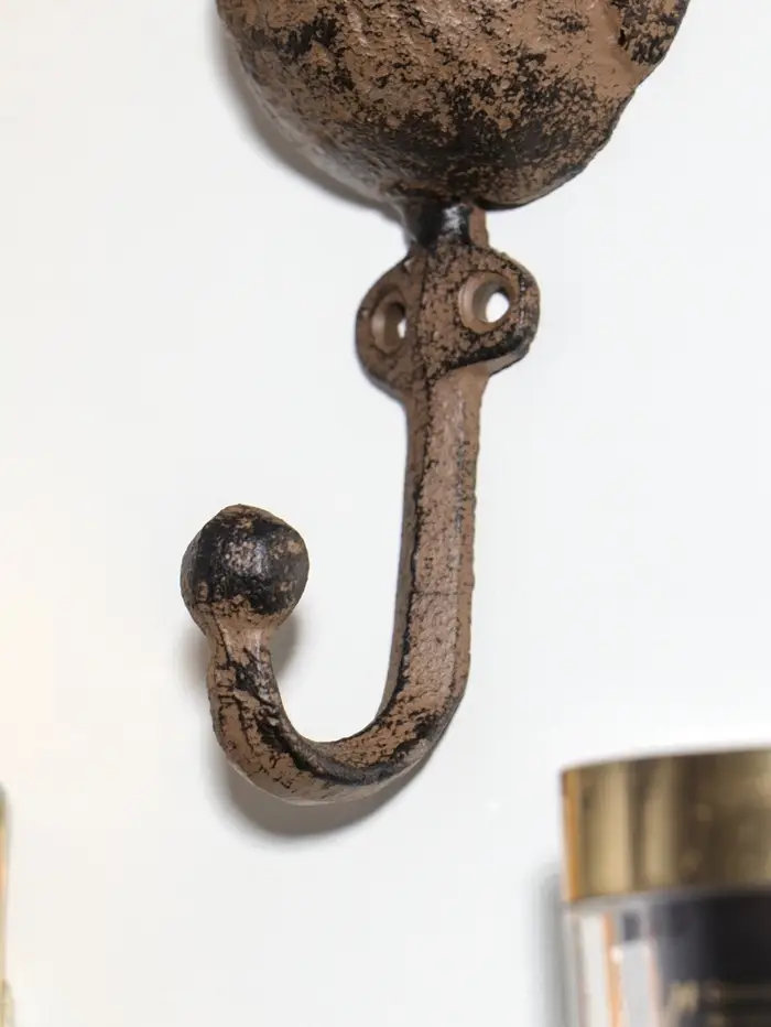 - Прочный кованый крюк легко выдерживает вес связки ключей или легкой сумки.