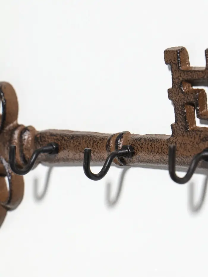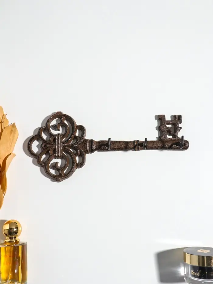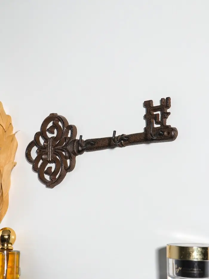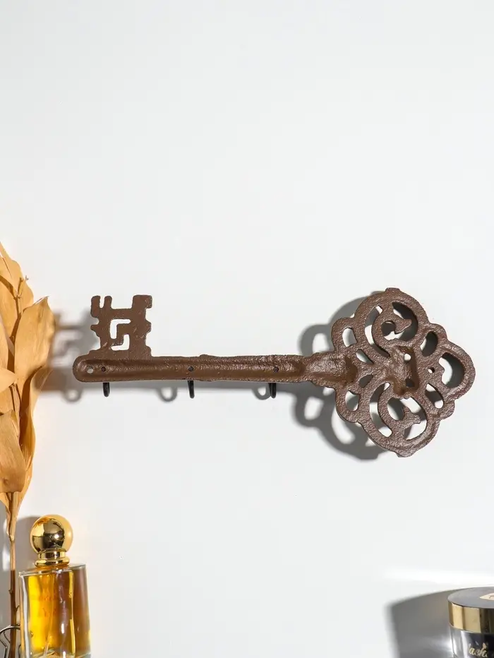 Эта декоративная ключница из чугуна превращает обычное хранение ключей в элемент интерьера. Три удобных крючка всегда под рукой, а филигранный силуэт ажурного ключа добавляет пространству характер и тёплую атмосферу винтажной мастерской. Прочное чугунное литье и стойкое покрытие коричневого тона гарантируют, что изделие долгие годы будет сохранять свой вид, не боясь ежедневного использования.