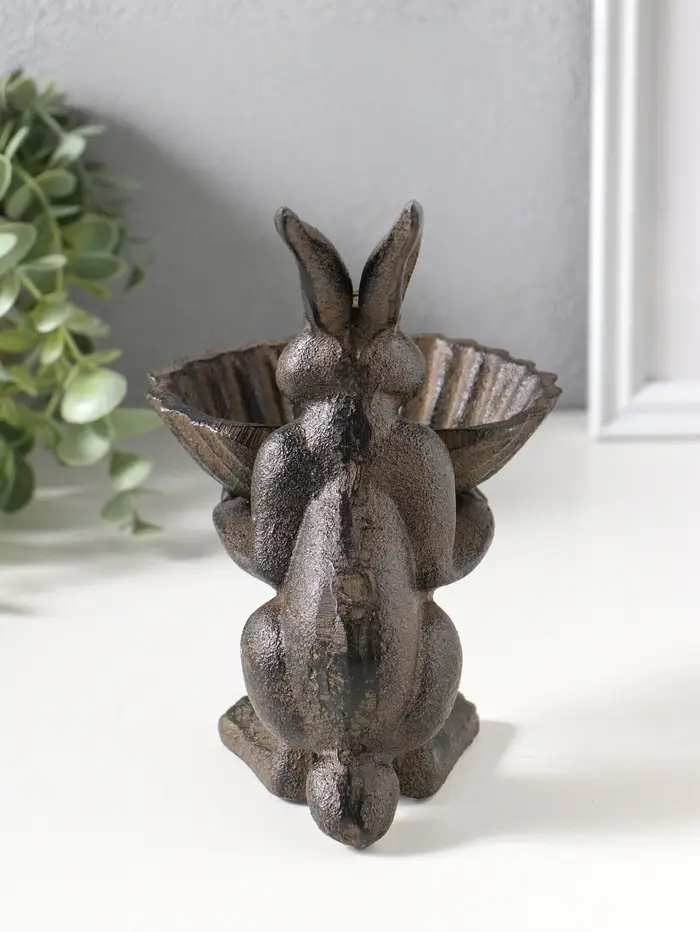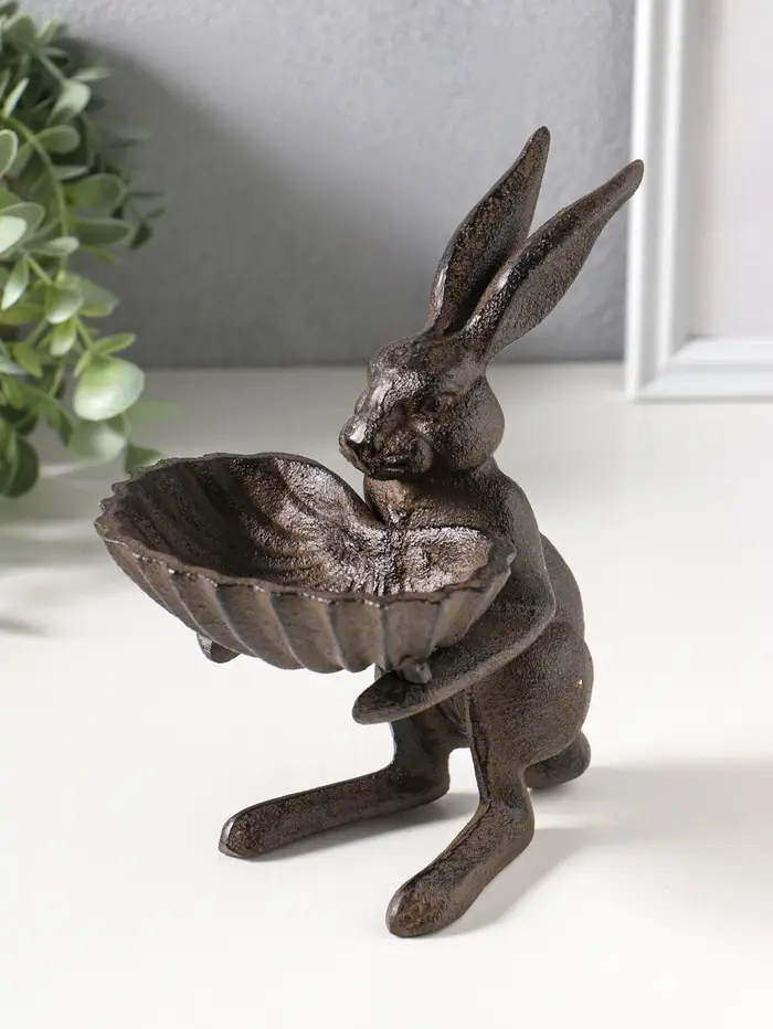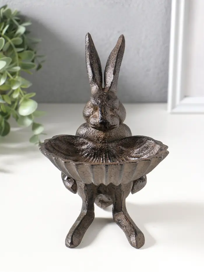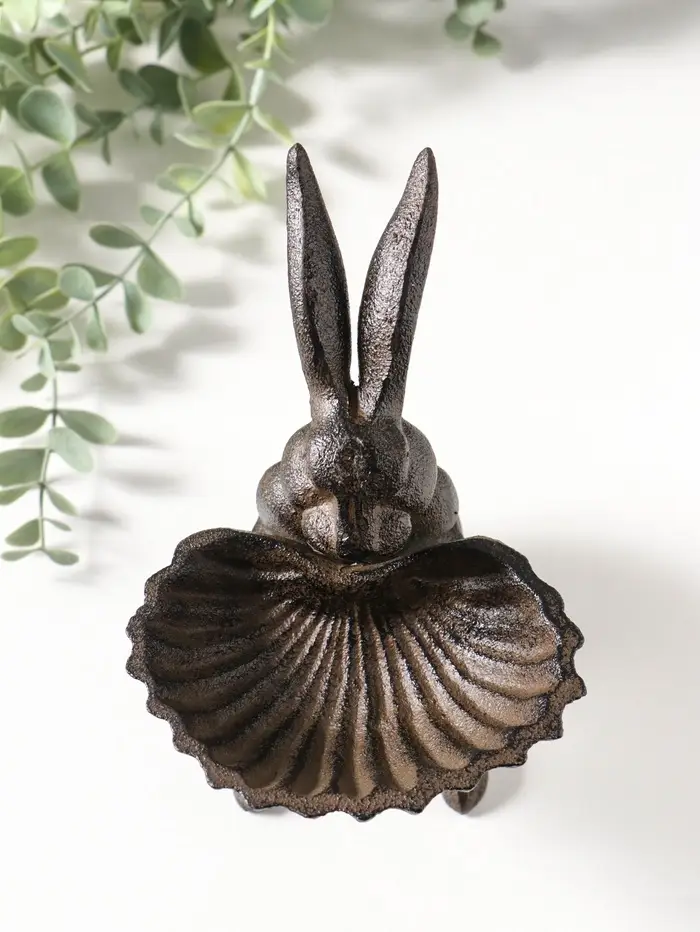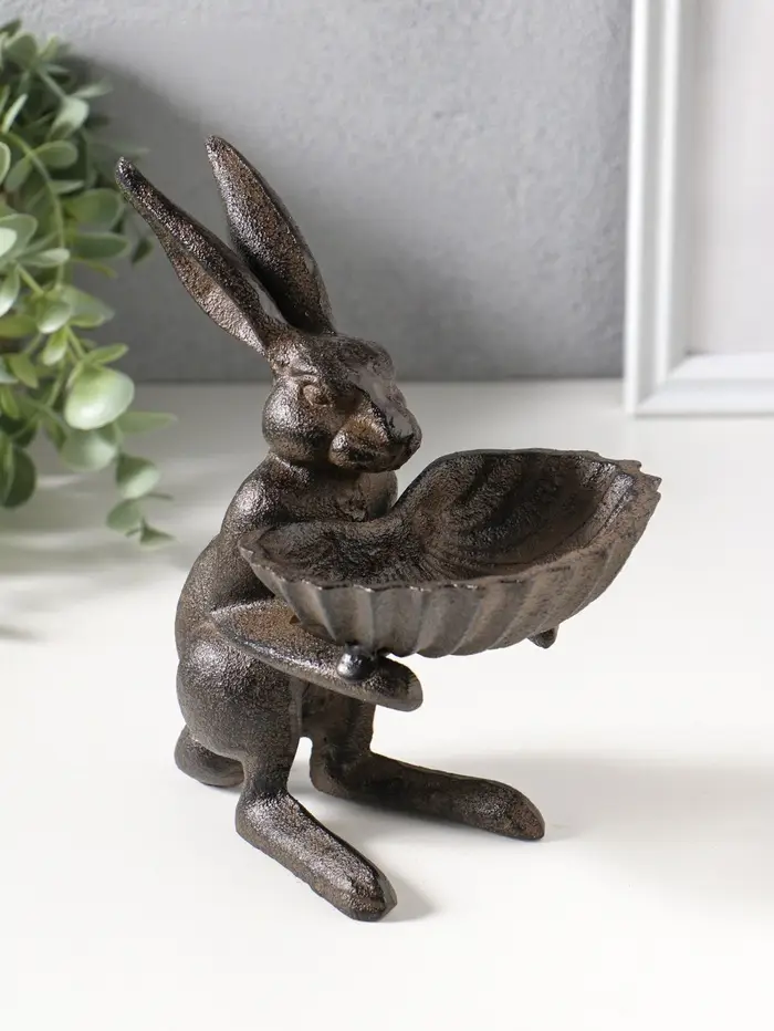 Сувенир чугун подставка, кормушка для птиц "Заяц с ракушкой" 14х11,5х16,5 см
