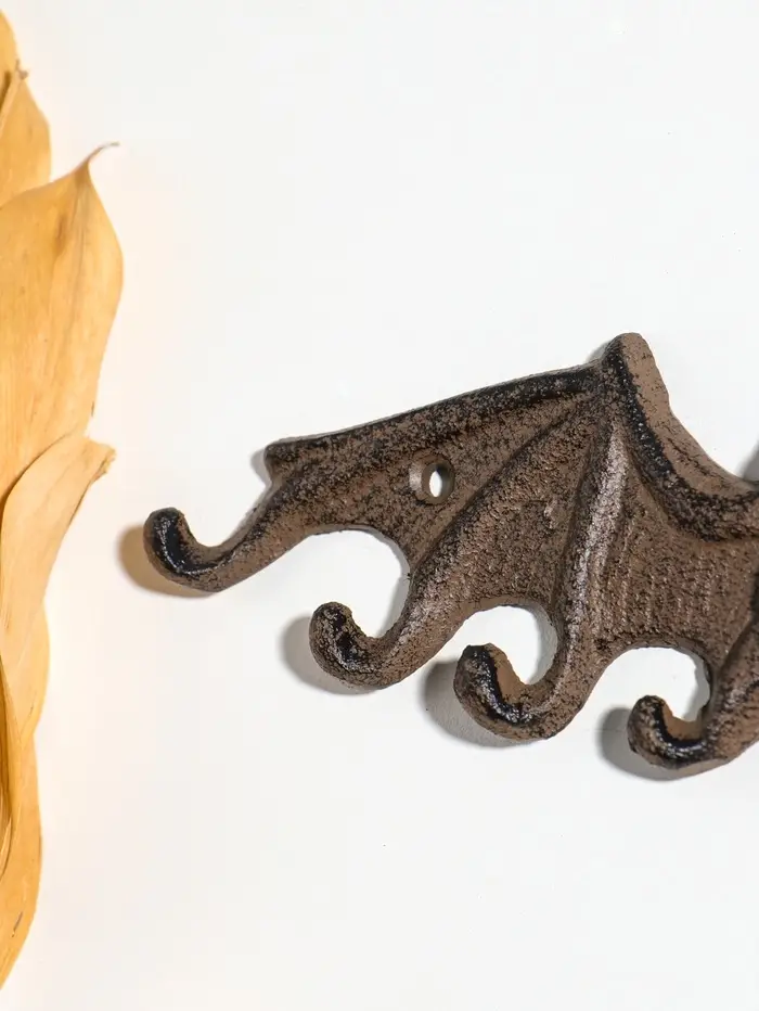 Эта чугунная ключница с крючками в виде летучей мыши станет не просто утилитарным предметом, а характерной деталью прихожей. Её выразительный силуэт и тёплый коричневый оттенок создают атмосферу уюта и загадочности, напоминая о старинных замках и природе. Каждый из восьми «рожков» готов принять на себя тяжесть ваших ключей, сумок или головных уборов, надёжно освобождая руки в момент возвращения домой.