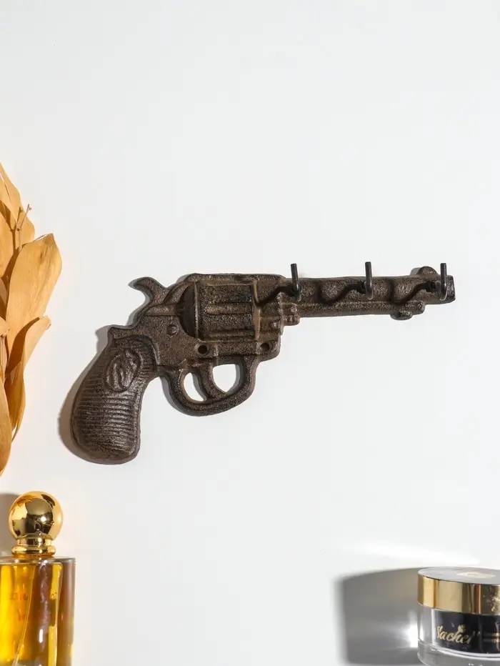 Эта чугунная ключница с крючками станет стильным и надёжным организатором в вашем прихожей. Её лаконичный дизайн в тематике классического оружия добавит интерьеру характер и чёткий мужской акцент. Массивная литая форма из чугуна гарантирует долговечность, а три удобных рожка помогут быстро найти нужный ключ и всегда держать их в порядке.