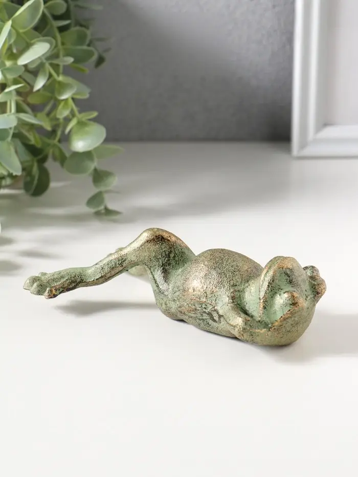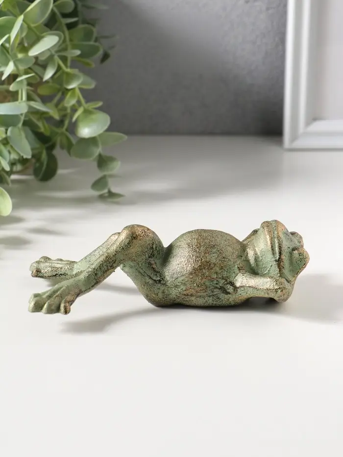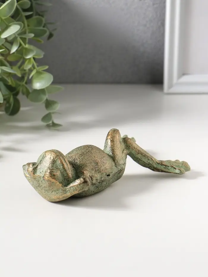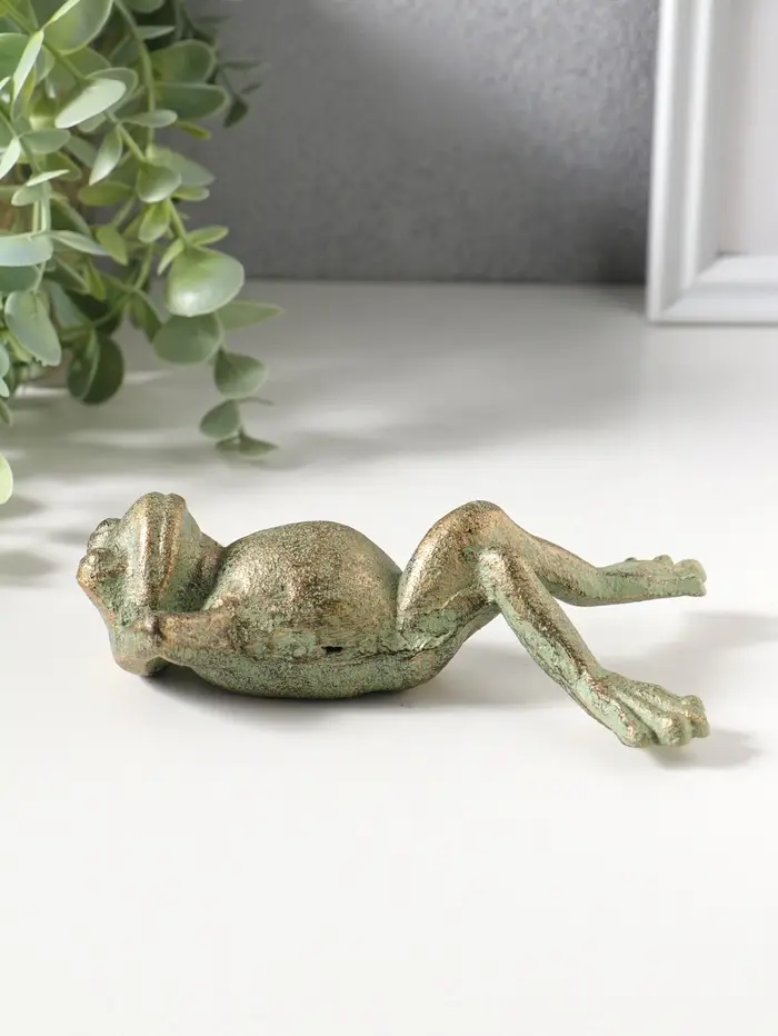 Сувенир чугун "Лягуха на отдыхе" зелёная патина 14,5х8,,8х4 см