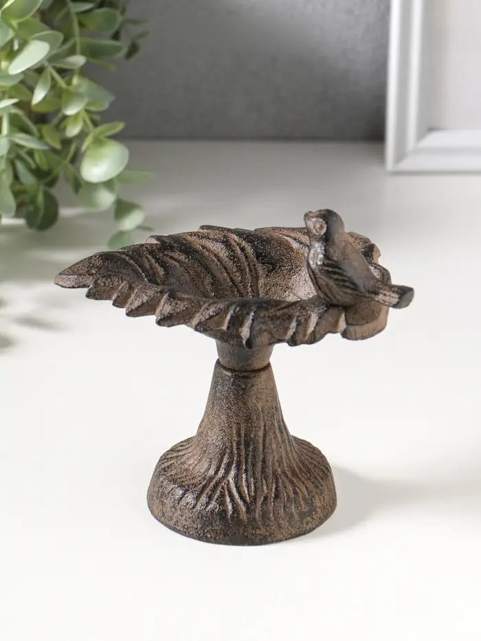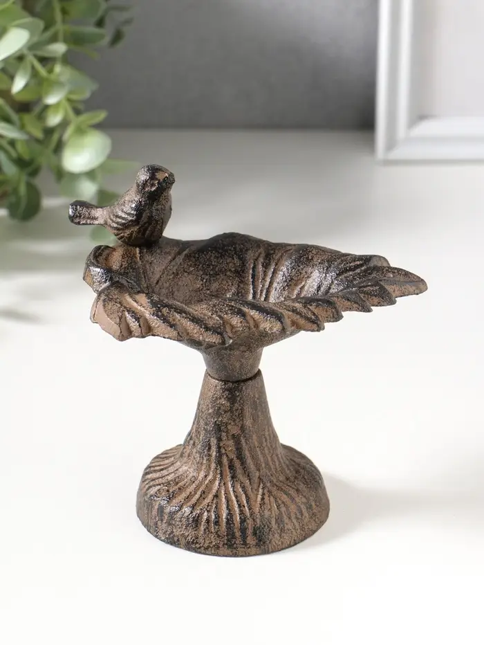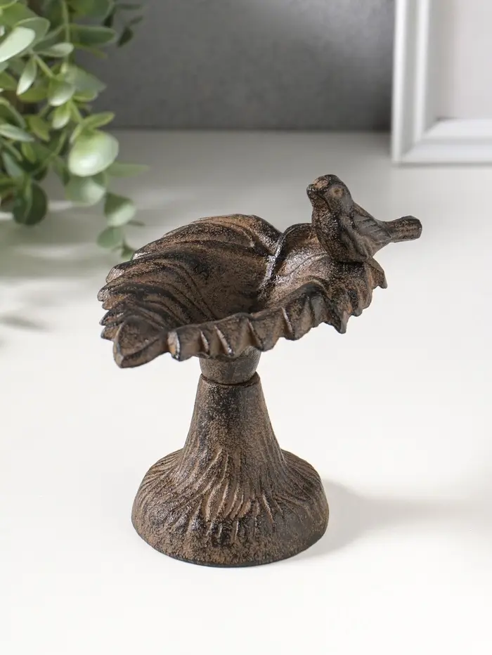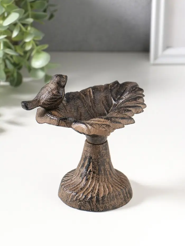 Сувенир чугун подставка, кормушка для птиц "Птичка на листе" 12х10х13 см