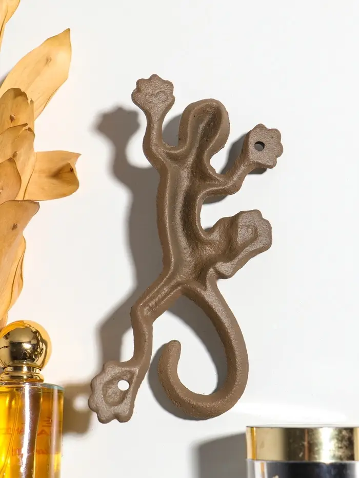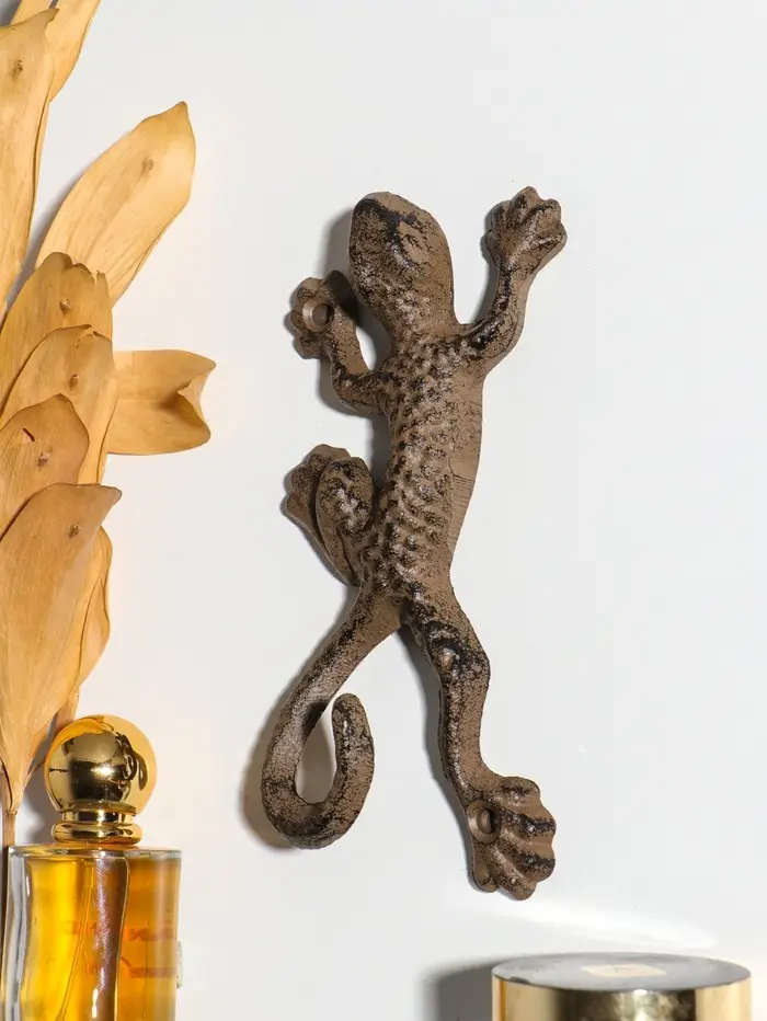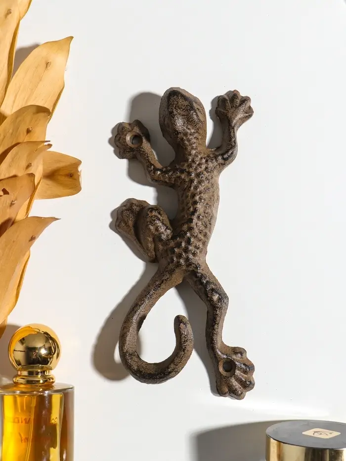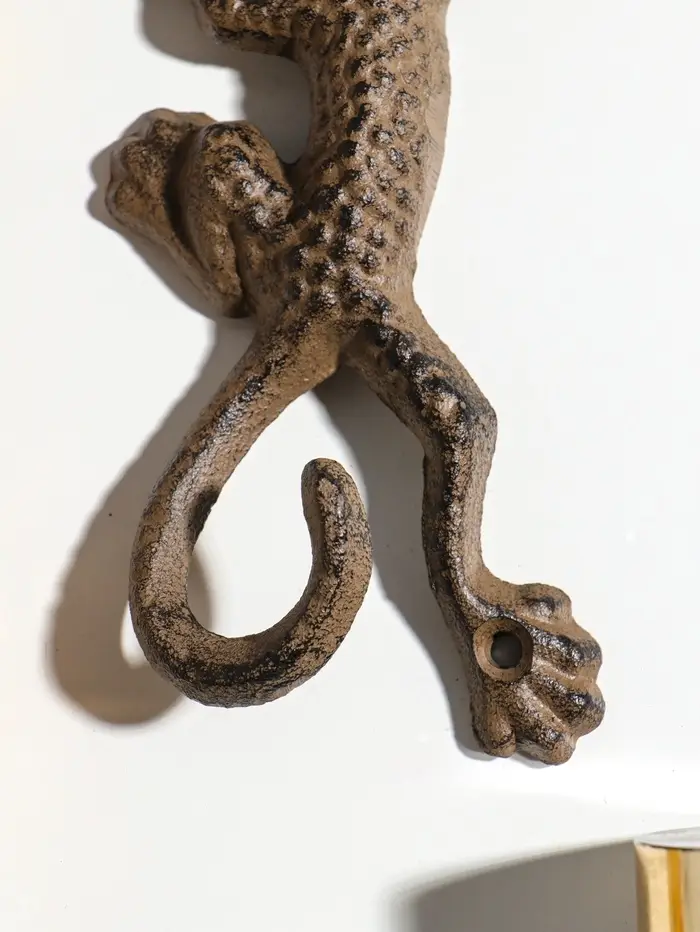 Эта чугунная ключница с крючком — не просто утилитарный предмет, а маленький характерный акцент для вашего дома. Фигурка ящерицы, застывшая на стене, привносит ноту живой природы и добротного ремесла в прихожую, кухню или кабинет. Массивный чугун обеспечивает долговечность, а тёплый коричневый оттенок легко впишется в большинство интерьеров.