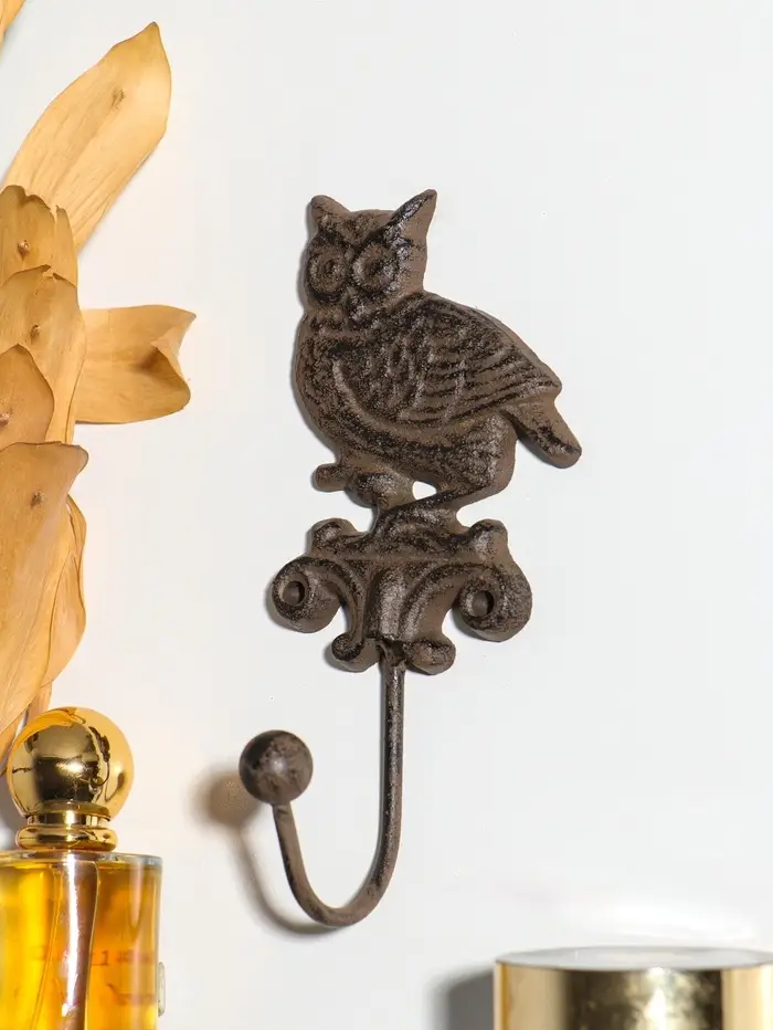 Эта чугунная ключница с крючком в виде совы встречает вас у порога. Тёплый коричневый оттенок и детальная проработка фигурки создают ощущение уюта и спокойствия. Прочный литой корпус надёжно удерживает даже тяжёлые связки ключей, а изящный дизайн превращает простой предмет обихода в лаконичное украшение для прихожей.