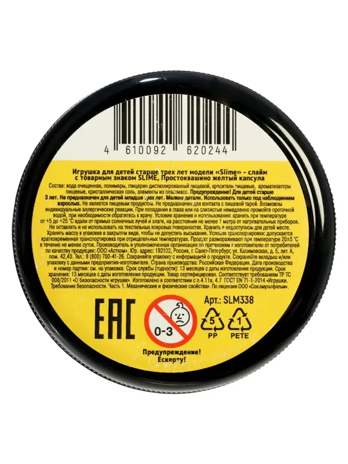 Слайм "Простоквашино", желтый, капсула 130 г. Slime SLM338