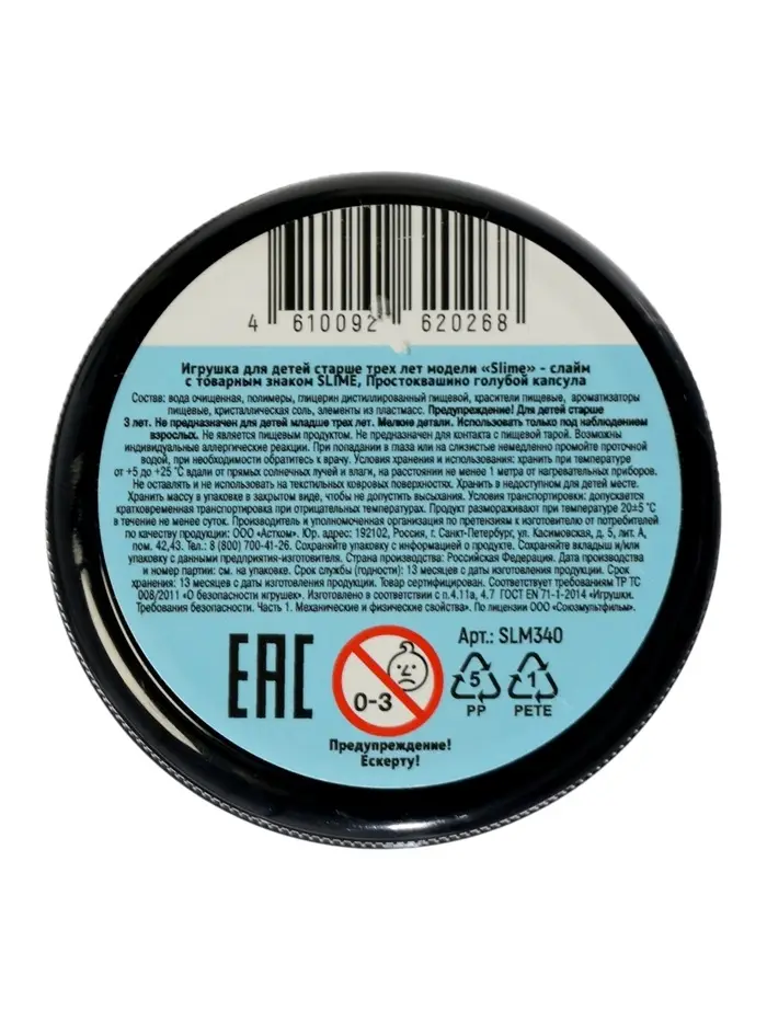 Слайм "Простоквашино", голубой, капсула 130 г. Slime SLM340