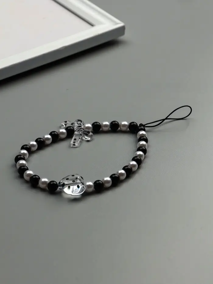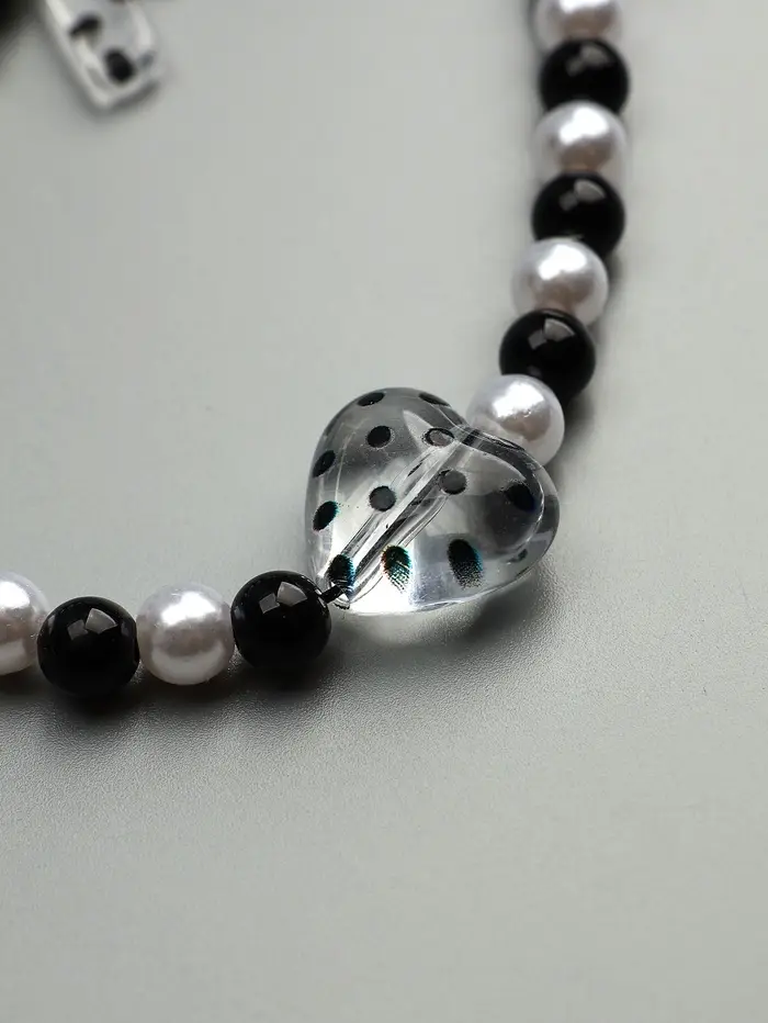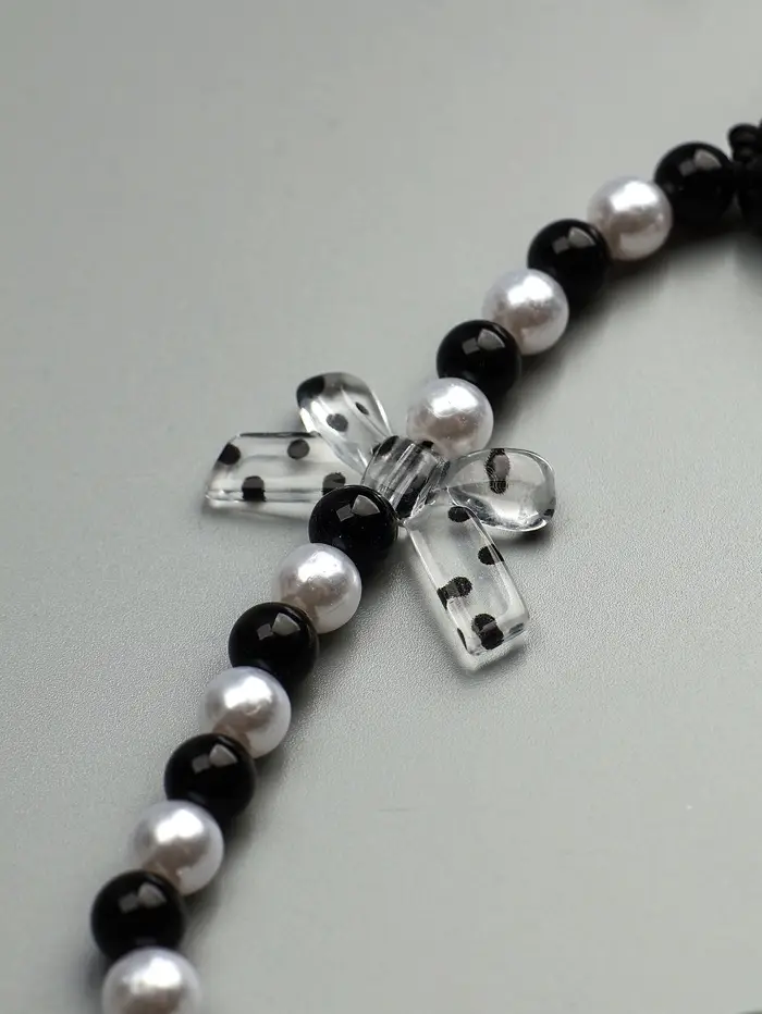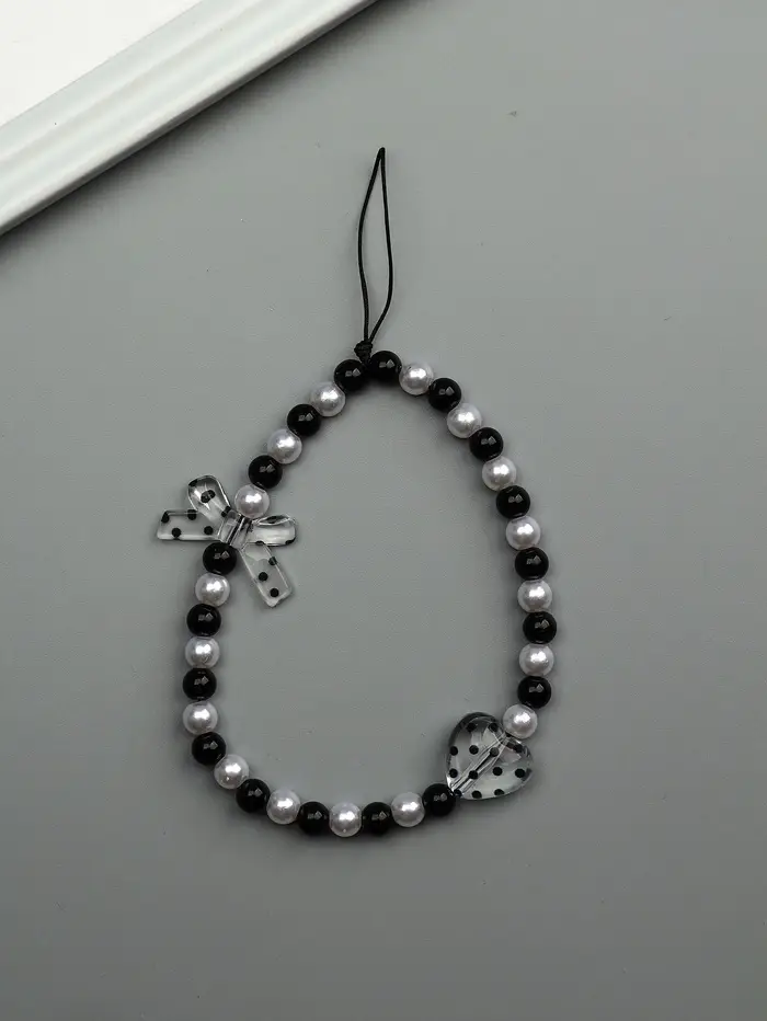 Брелок на карабине "Бант и сердце" черно-белый 14,5 см
