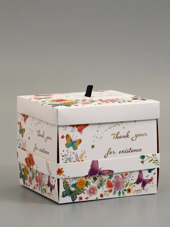 Коробка подарочная "Бабочки, Спасибо" 14,5 х 14,5 х 12,7 см