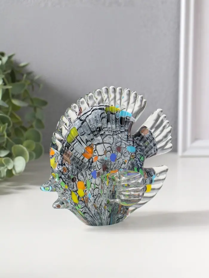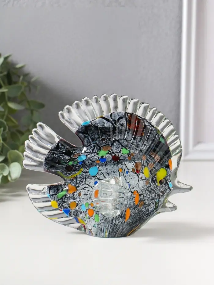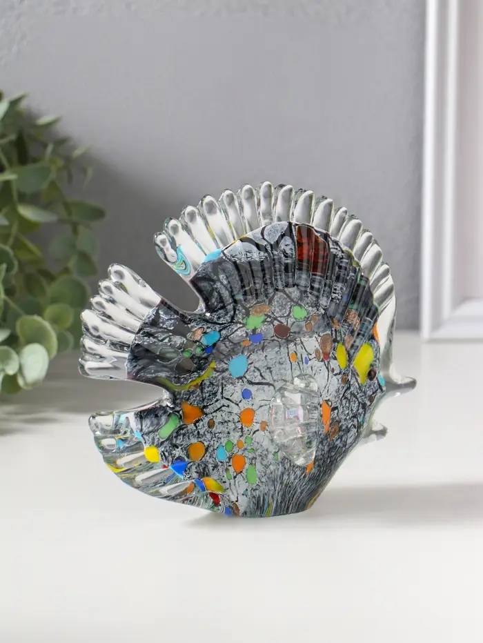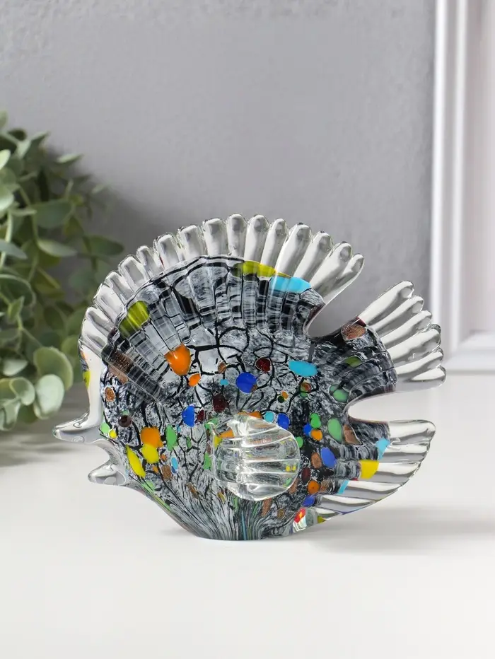 Сувенир стекло "Плоская пятнистая рыбка" под муранское стекло 6,5х16х13 см