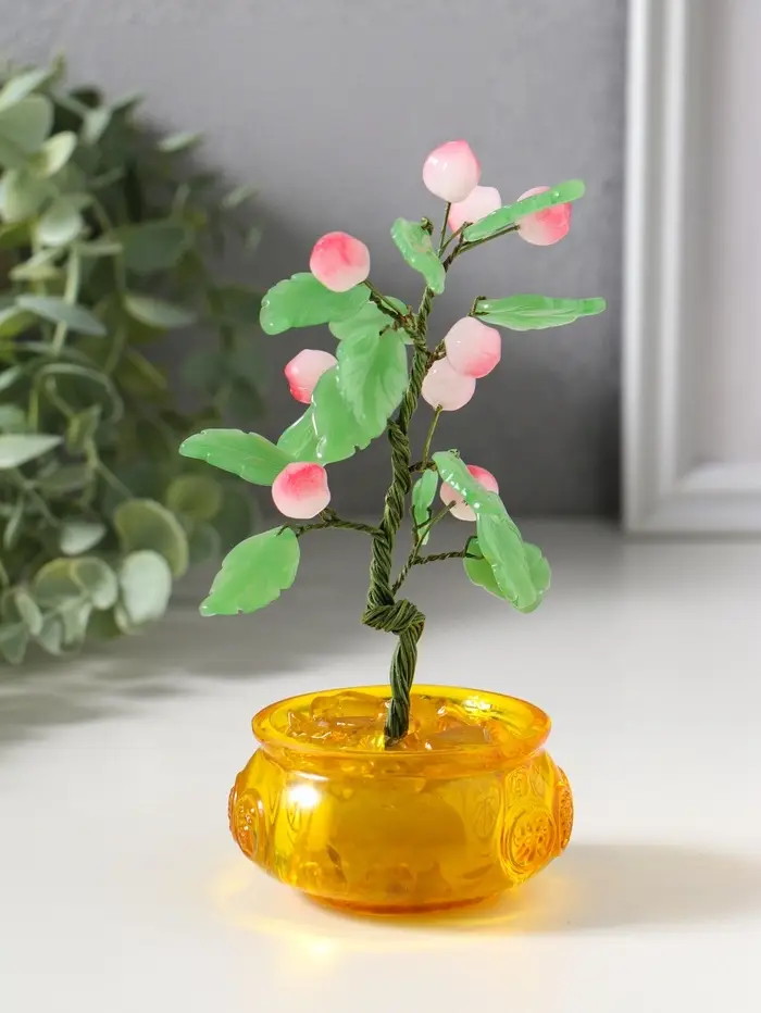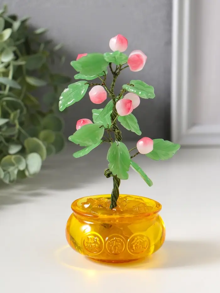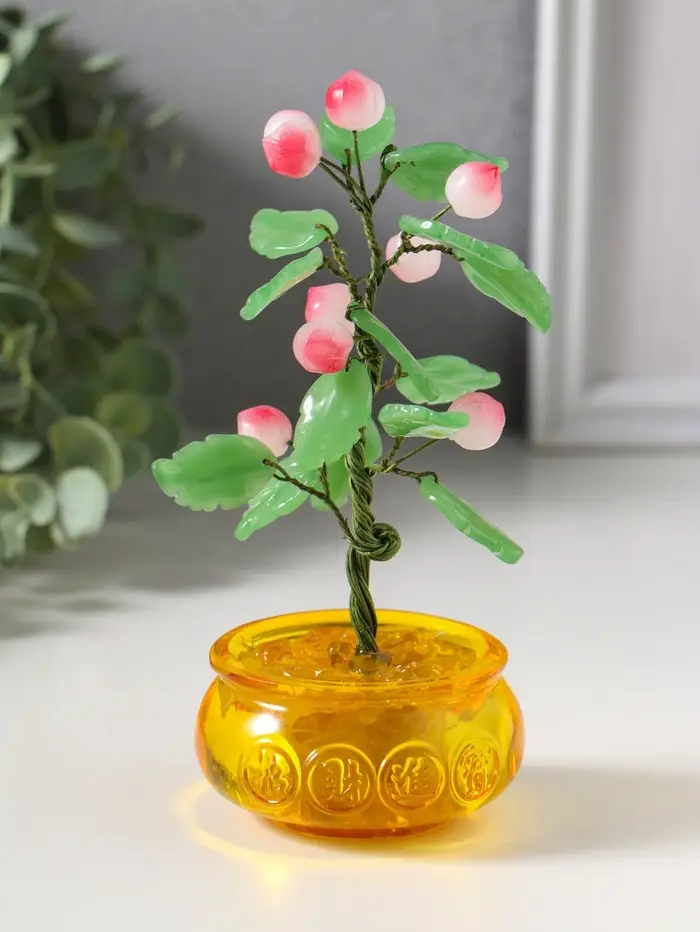 Сувенир бонсай "Дерево с персиками в чаше богатства" 9 персиков 14 листьев 7,5х9,5х16 см