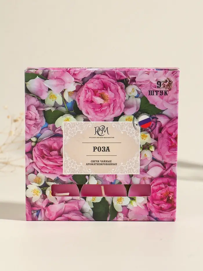 Набор свечей ароматических чайных «Роза», 10 г, 9 шт.