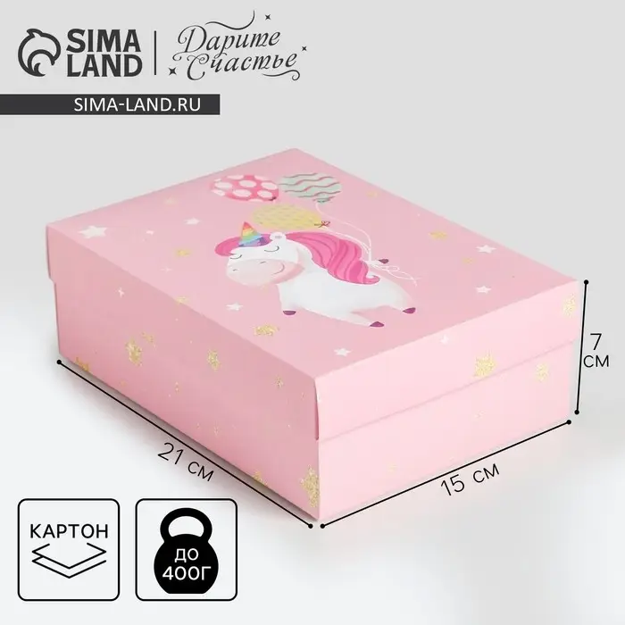 Коробка подарочная складная, упаковка, «Единорог», 21 х 15 х 7 см