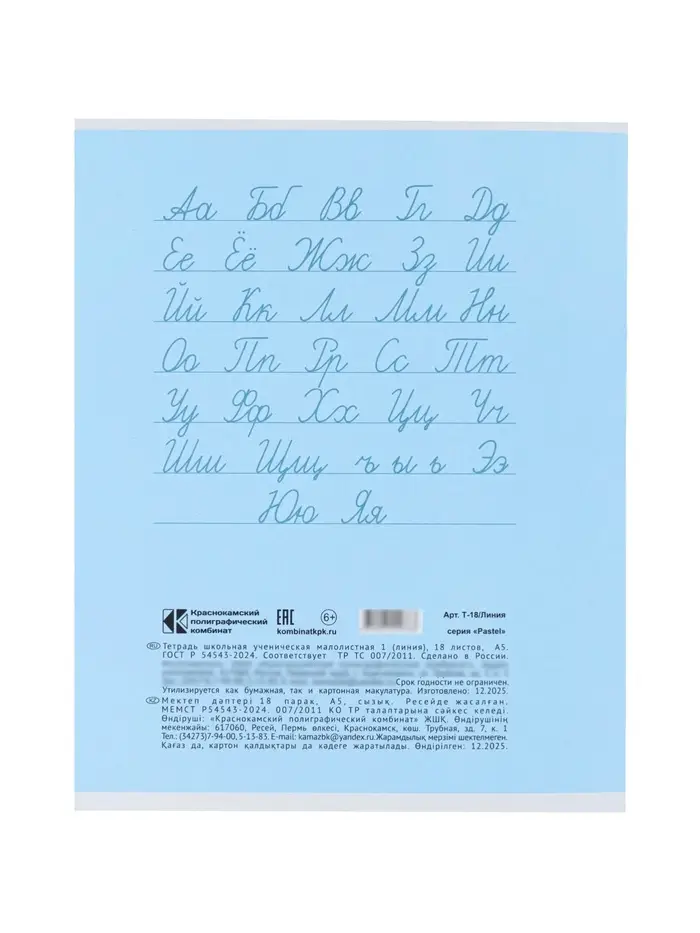 Тетрадь 18л лин КПК "Пастель", обл мел карт, блок ОФСЕТ, 5В МИКС
