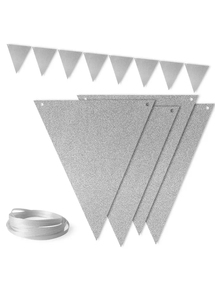 Гирлянда Флажки, Серебро, с блестками, 500 см, 13*18 см*12 шт, 1 упак.