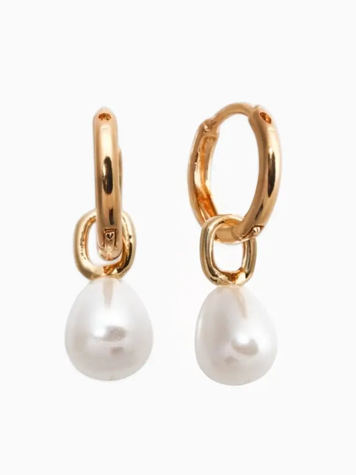 Серьги жемчуг "Бусина на ножке", цвет белый в золоте