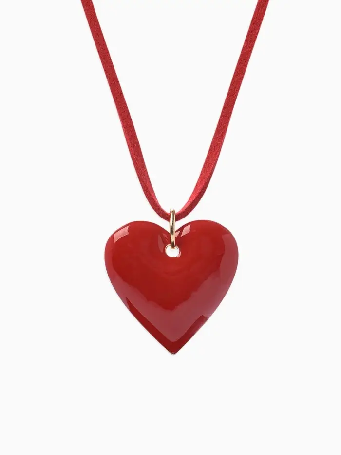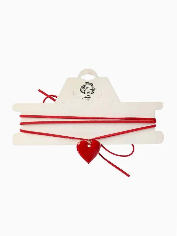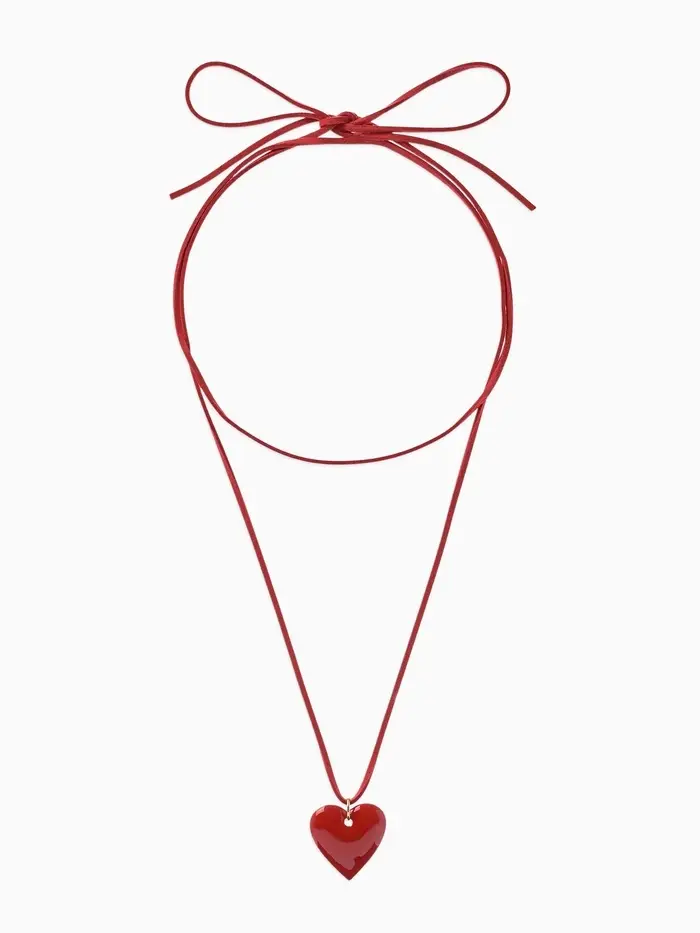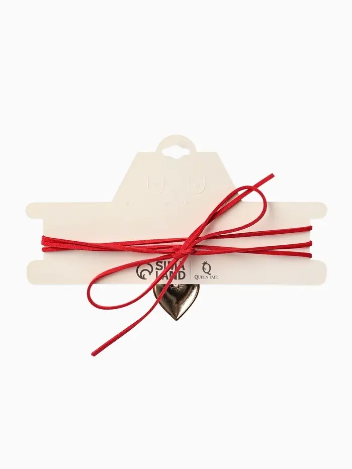 Чокер на нити с кулоном "Сердце" L=150см, цвет красный в золоте