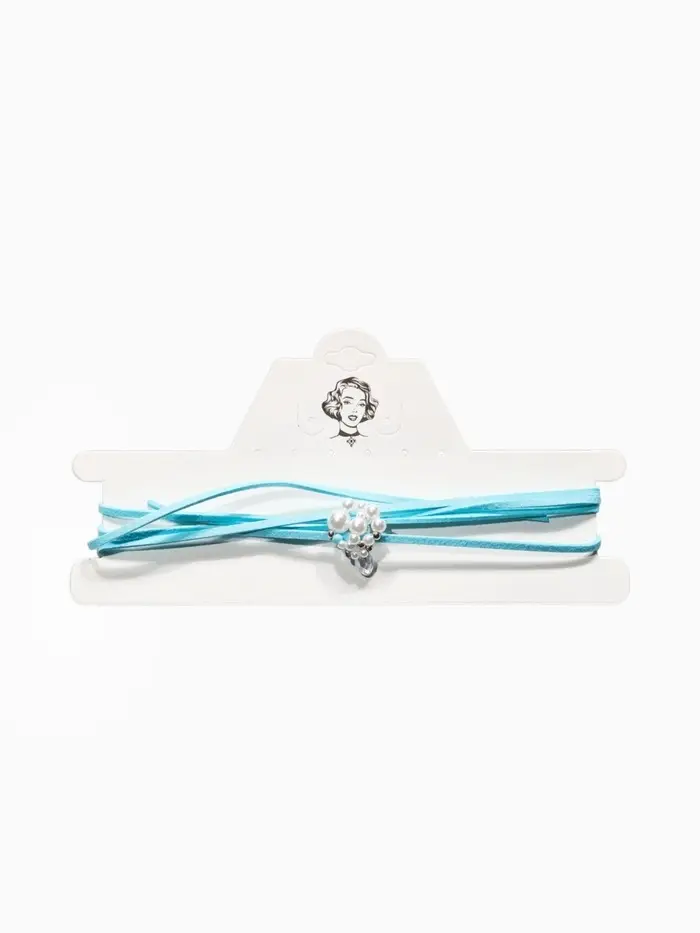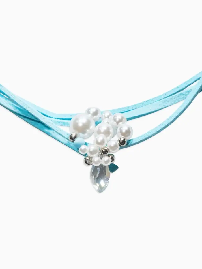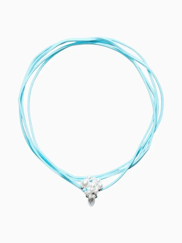 Чокер на нити с кулоном "Жемчуг с кристаллом" L=150см, цвет бело-голубой в серебре