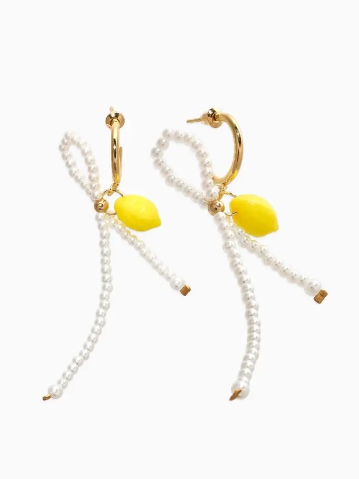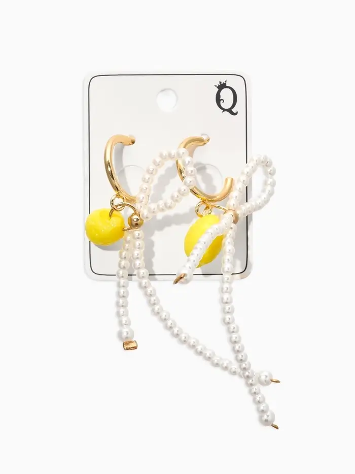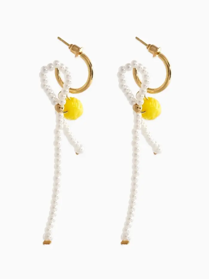 Серьги "Лимоны с бантиком", цвет жёлто-белый в золоте №2